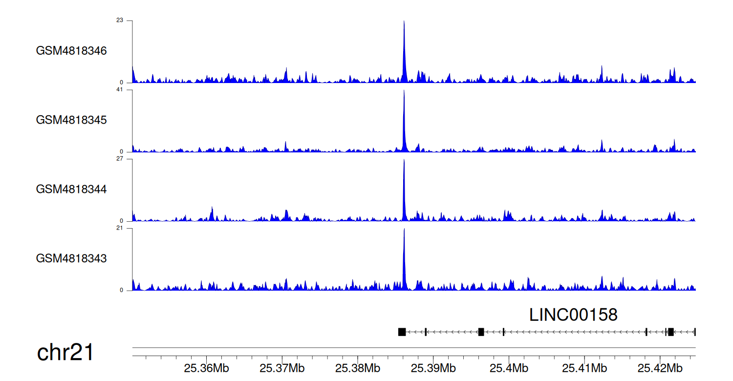 > Dataset: GSE131257 - LINC00158 peak across samples