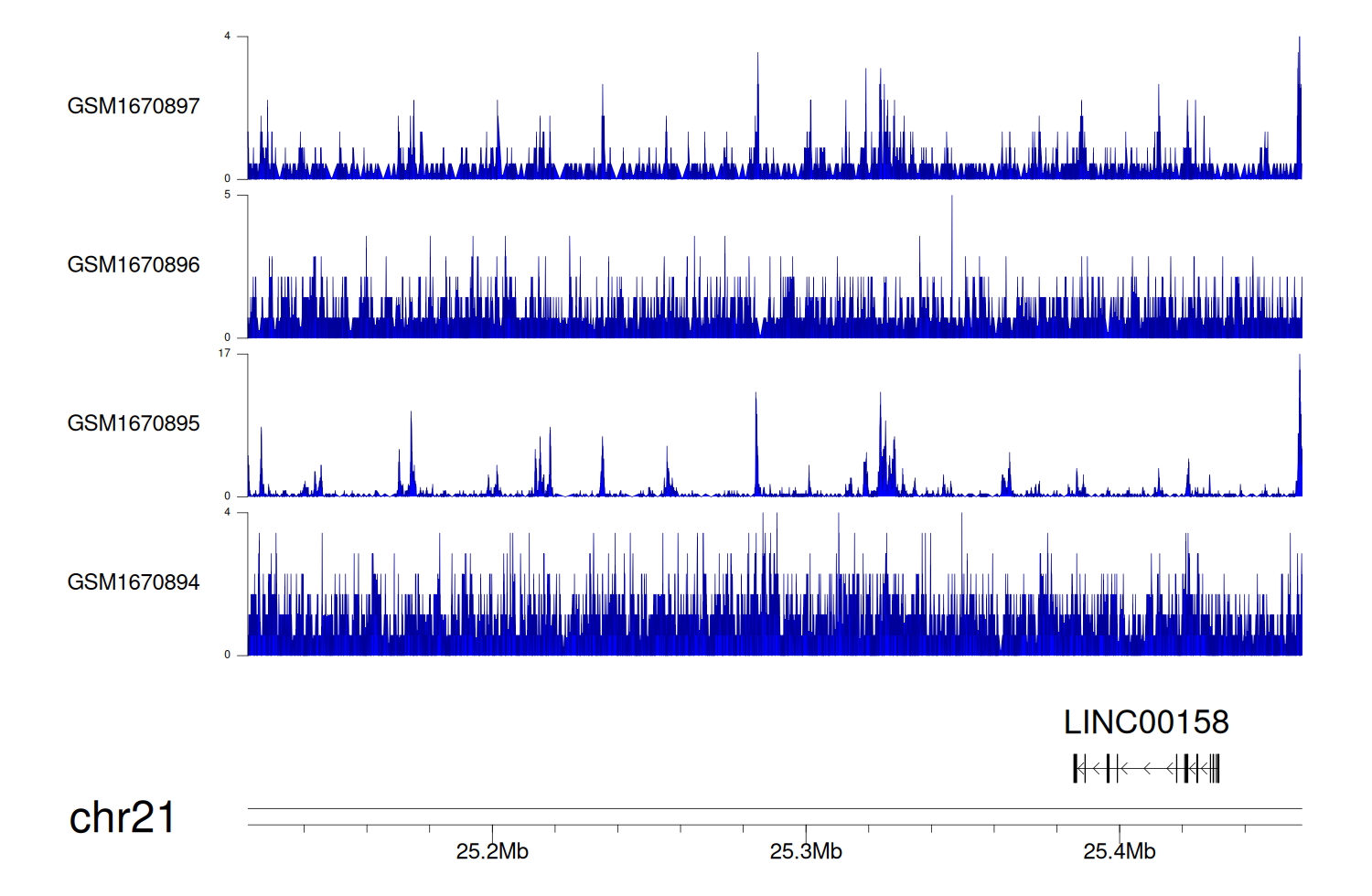 > Dataset: GSE100400 - LINC00158 peak across samples