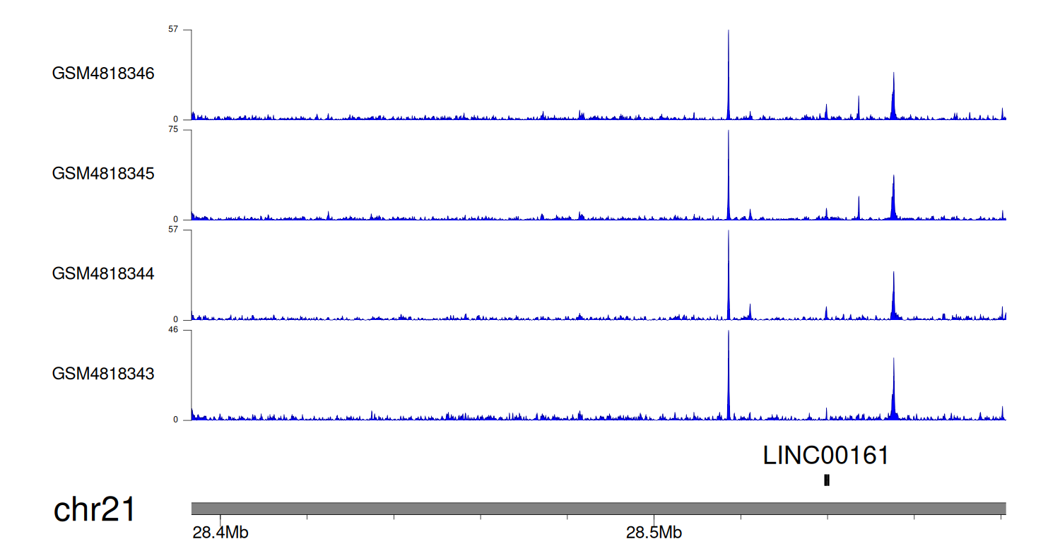 > Dataset: GSE131257 - LINC00161 peak across samples