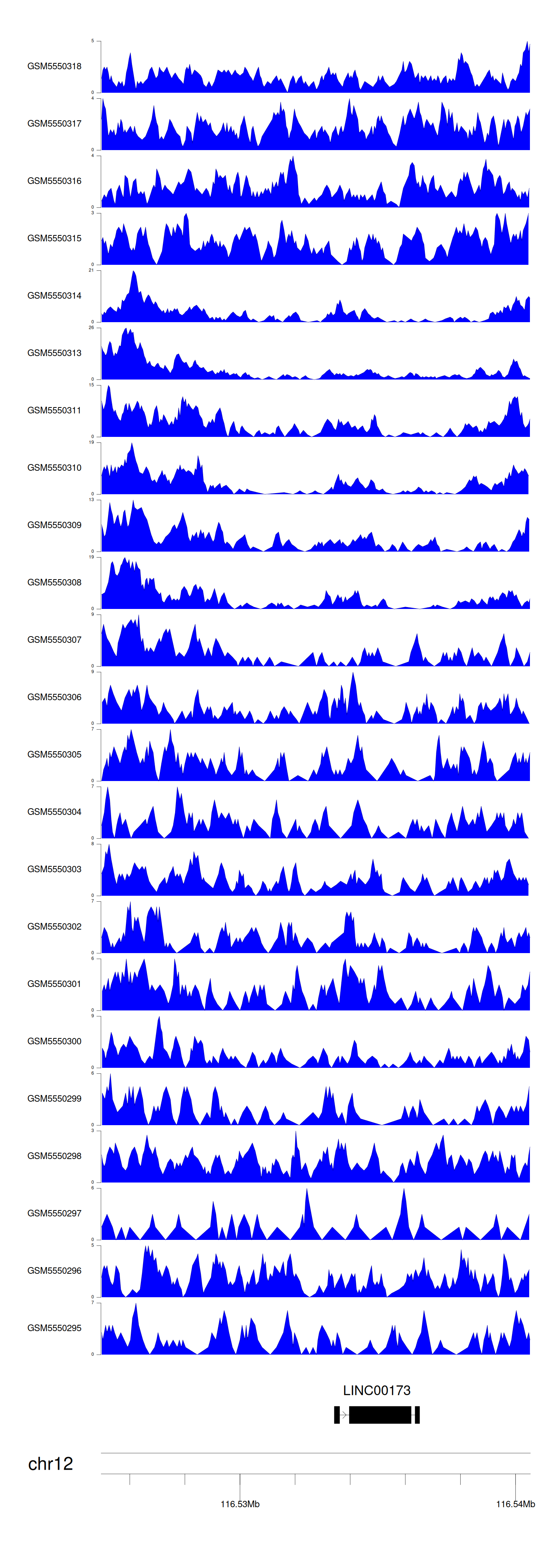 > Dataset: GSE143026 - LINC00173 peak across samples