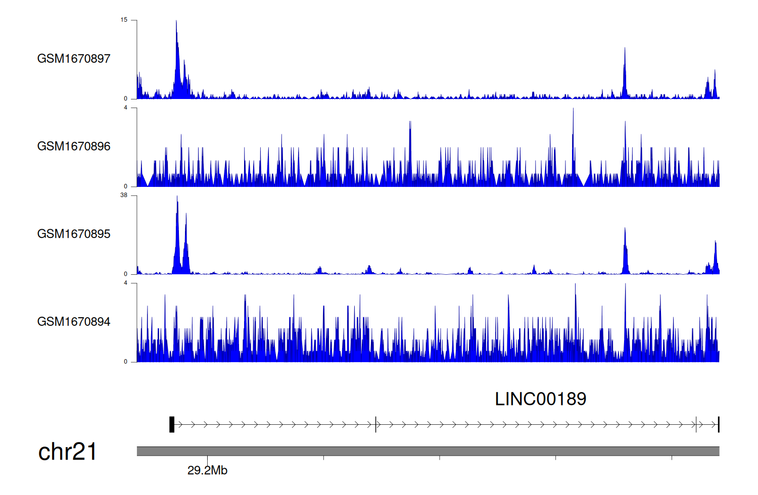 > Dataset: GSE68402 - LINC00189 peak across samples
