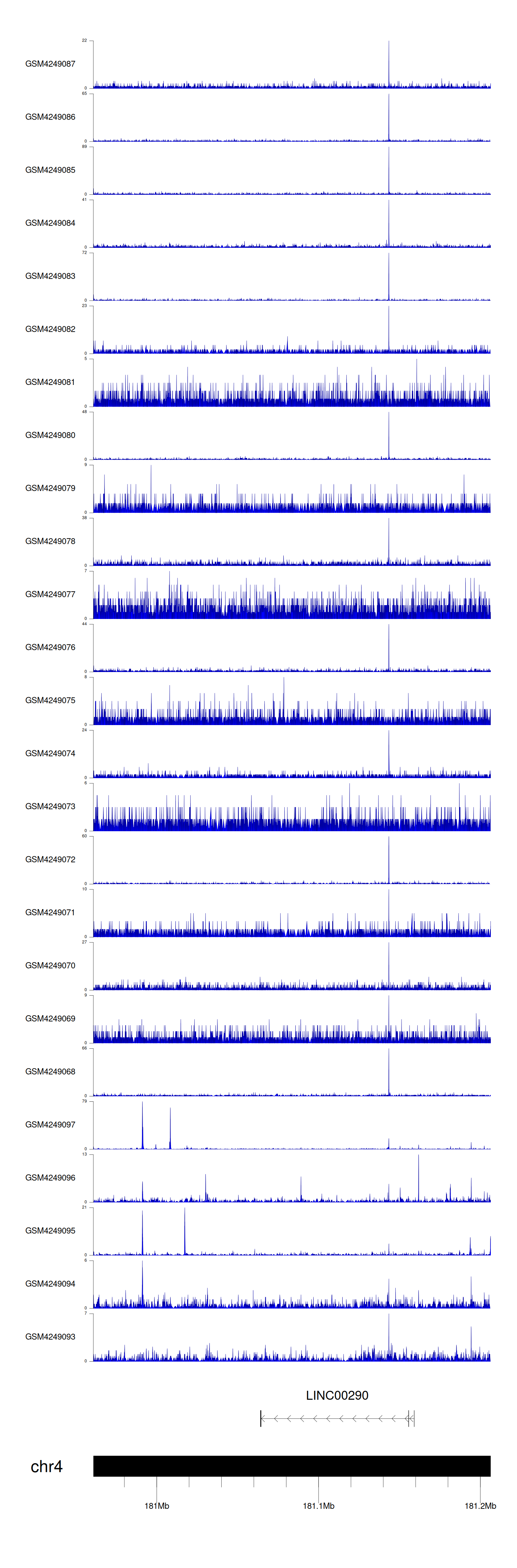 > Dataset: GSE143026 - LINC00290 peak across samples