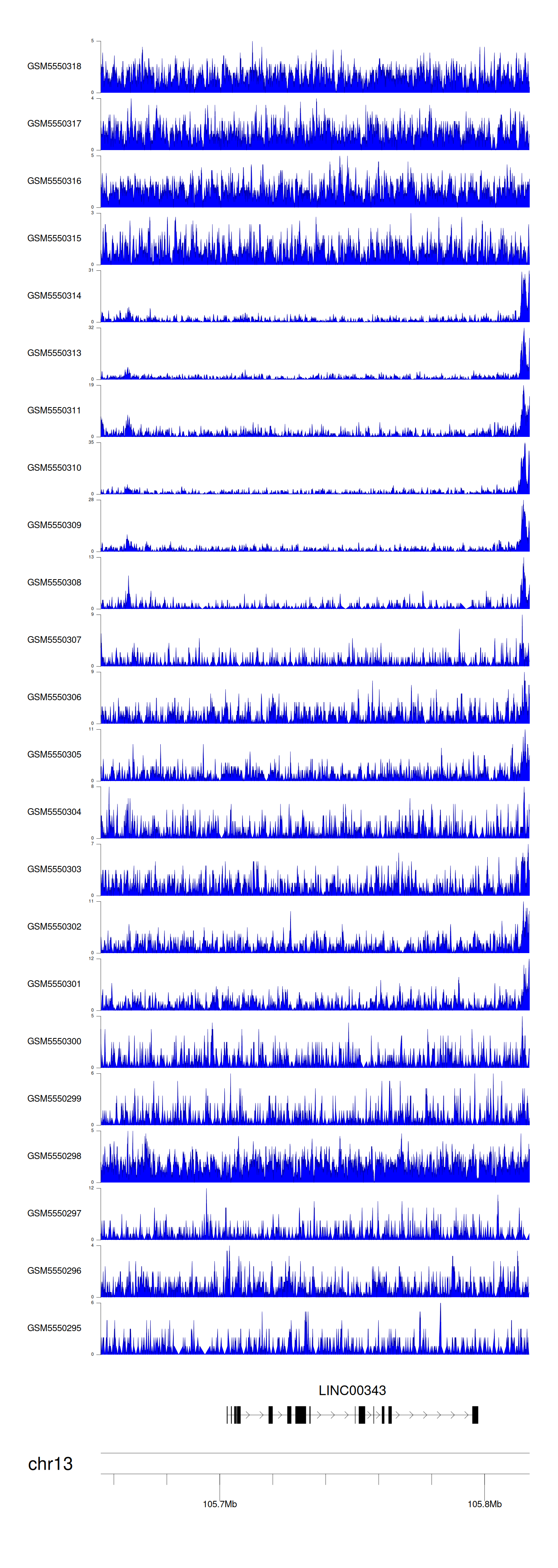 > Dataset: GSE143026 - LINC00343 peak across samples