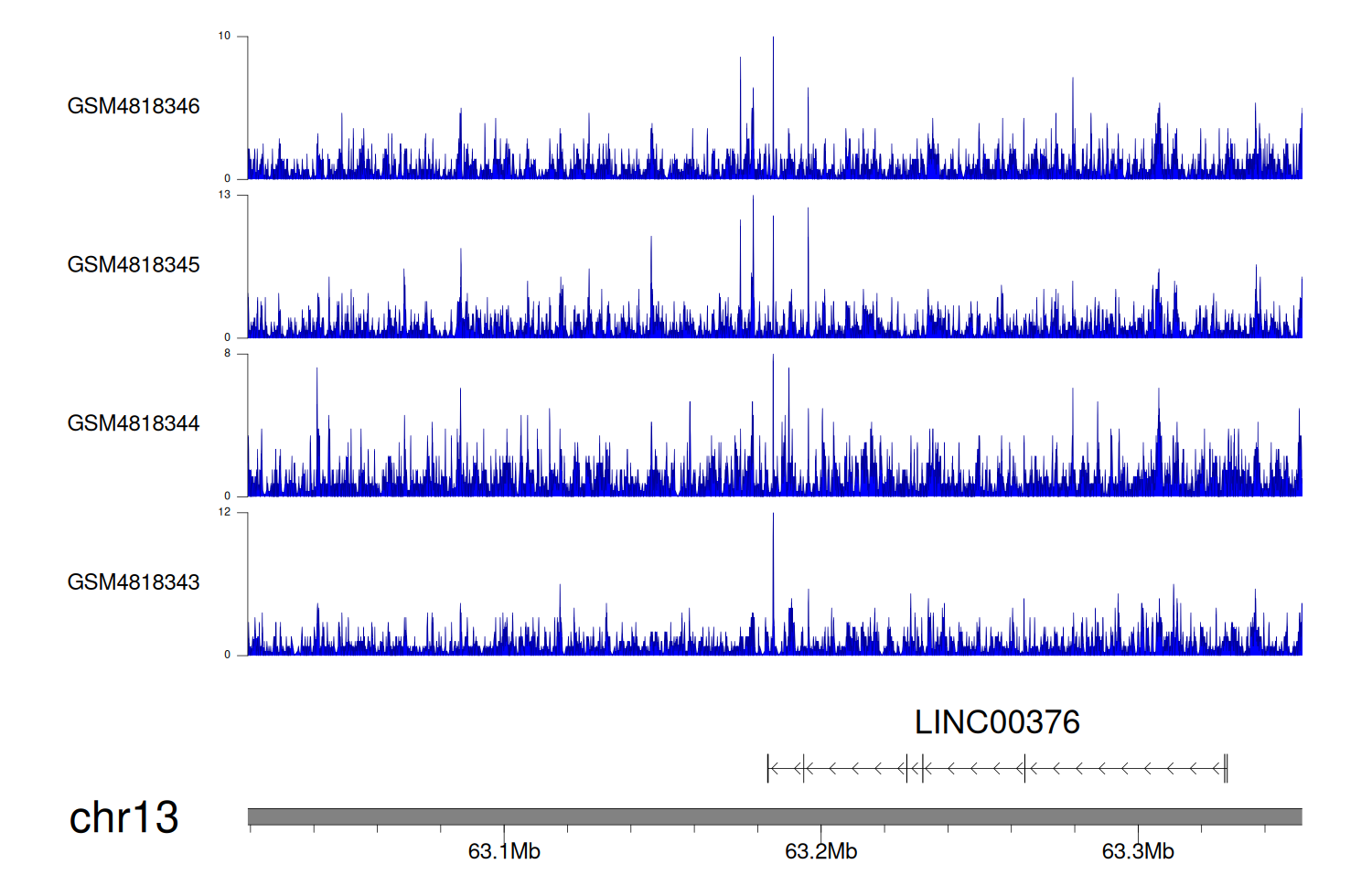 > Dataset: GSE131257 - LINC00376 peak across samples