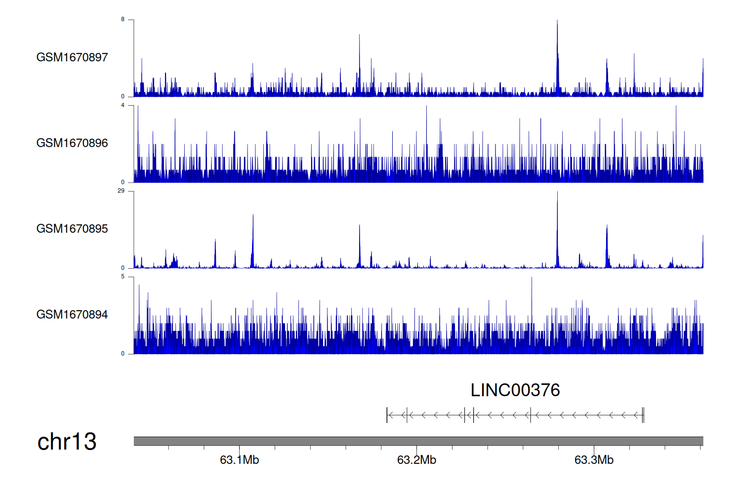 > Dataset: GSE68402 - LINC00376 peak across samples
