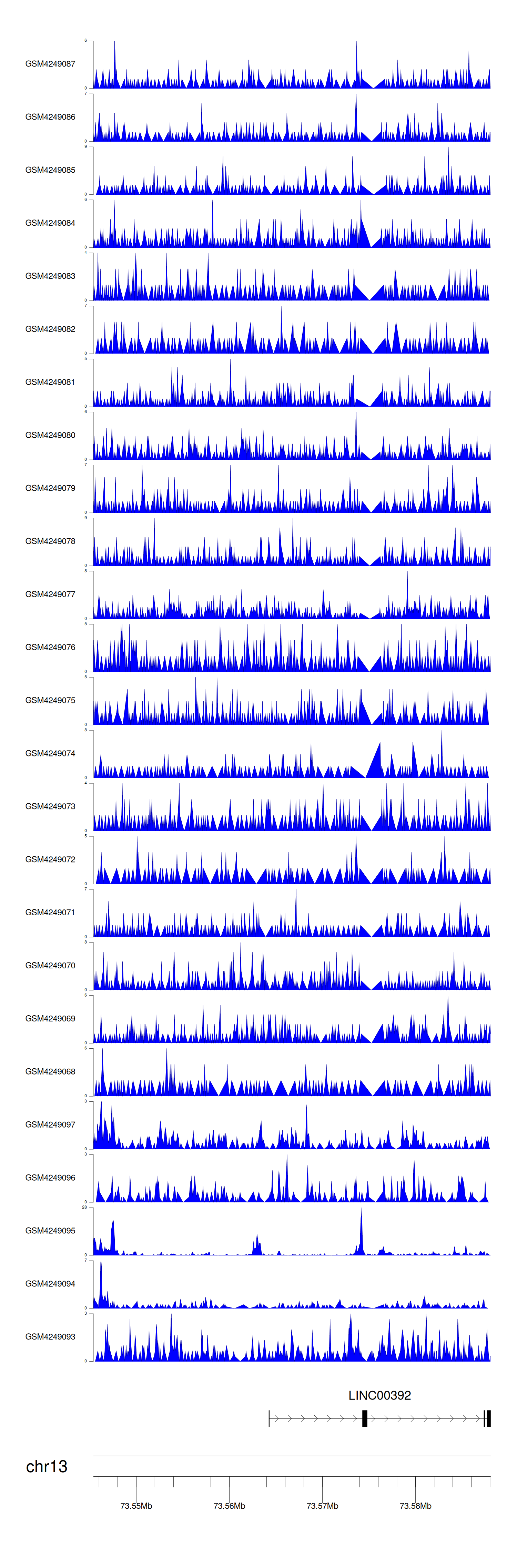 > Dataset: GSE143026 - LINC00392 peak across samples