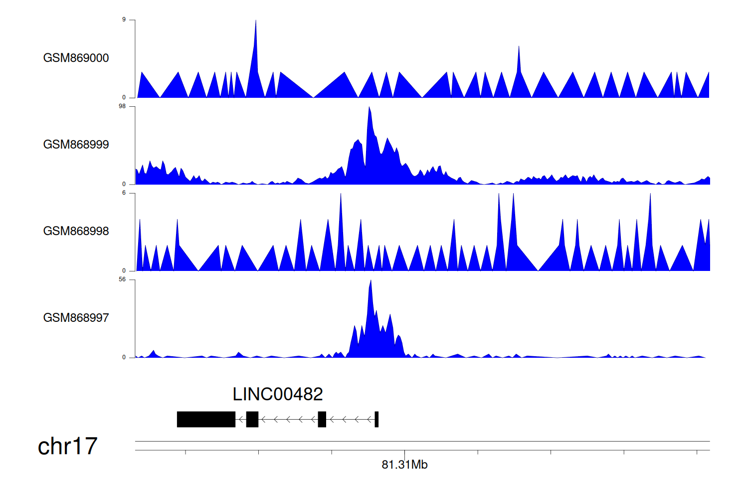 > Dataset: GSE68402 - LINC00482 peak across samples