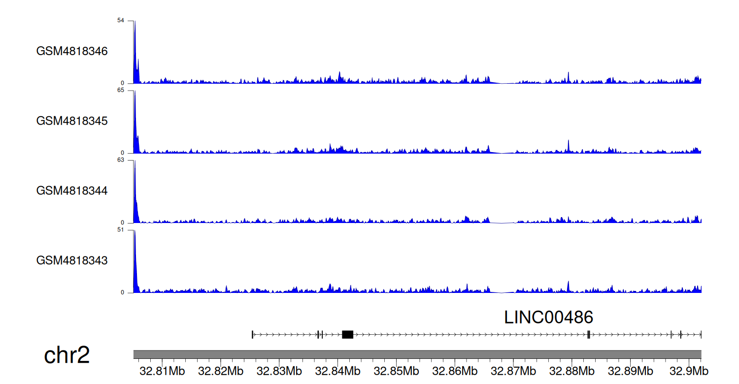 > Dataset: GSE131257 - LINC00486 peak across samples