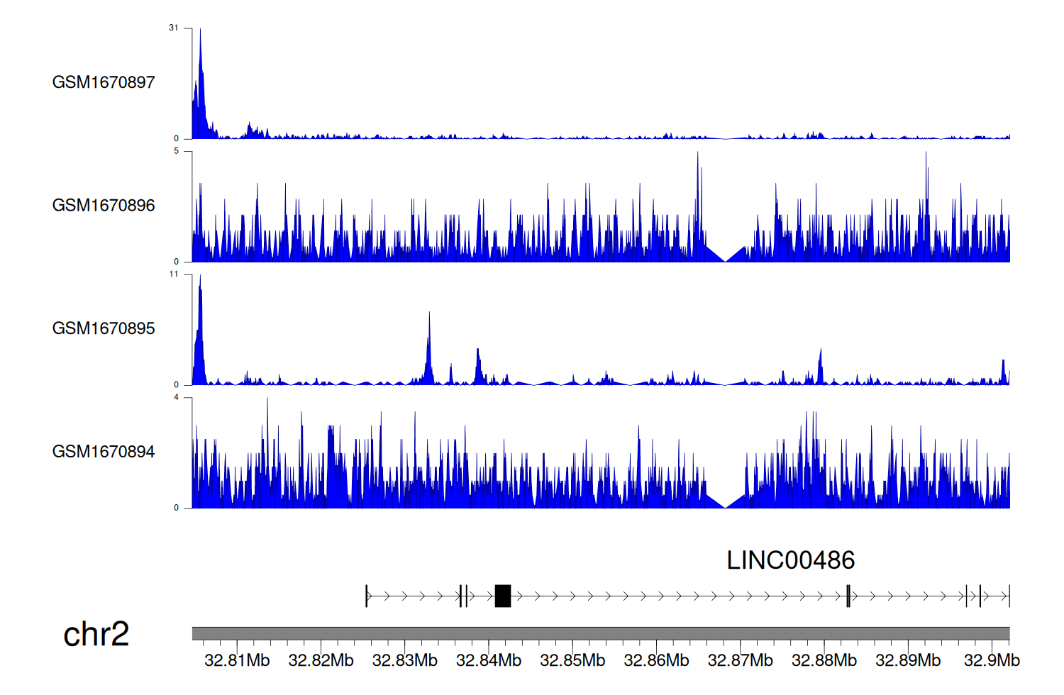 > Dataset: GSE35465 - LINC00486 peak across samples