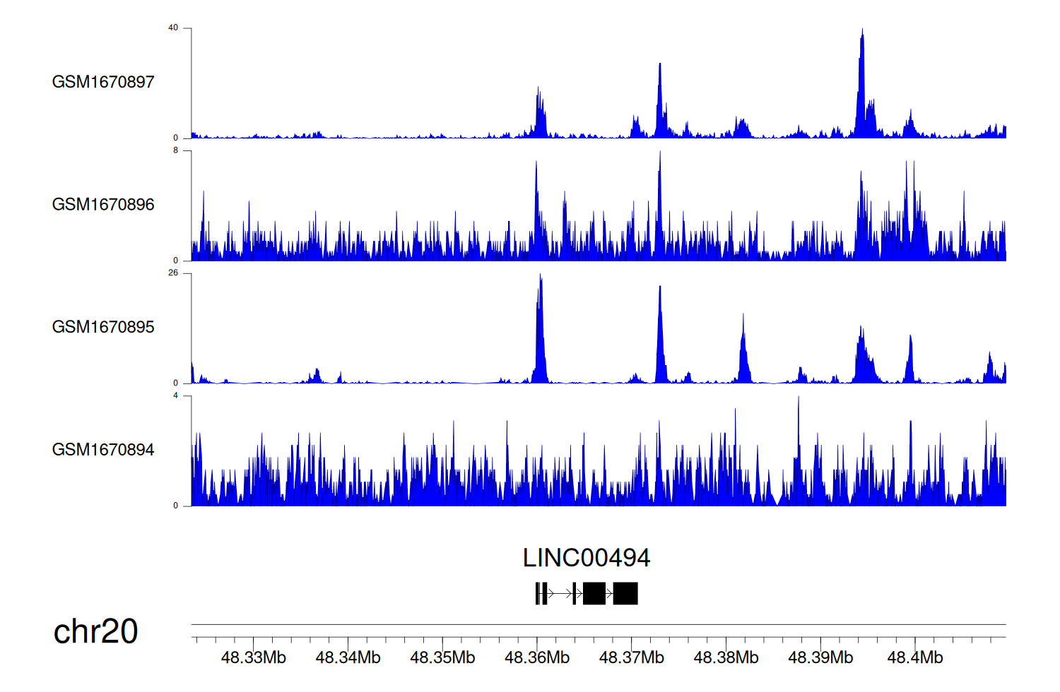 > Dataset: GSE68402 - LINC00494 peak across samples