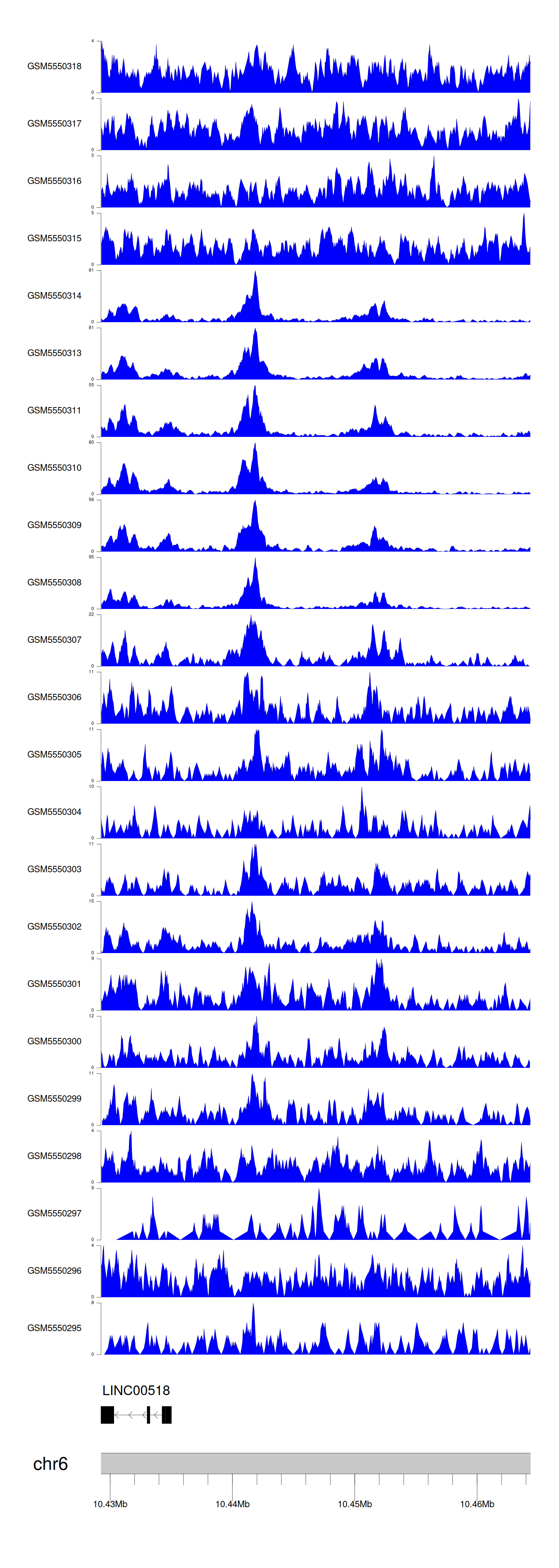 > Dataset: GSE143026 - LINC00518 peak across samples