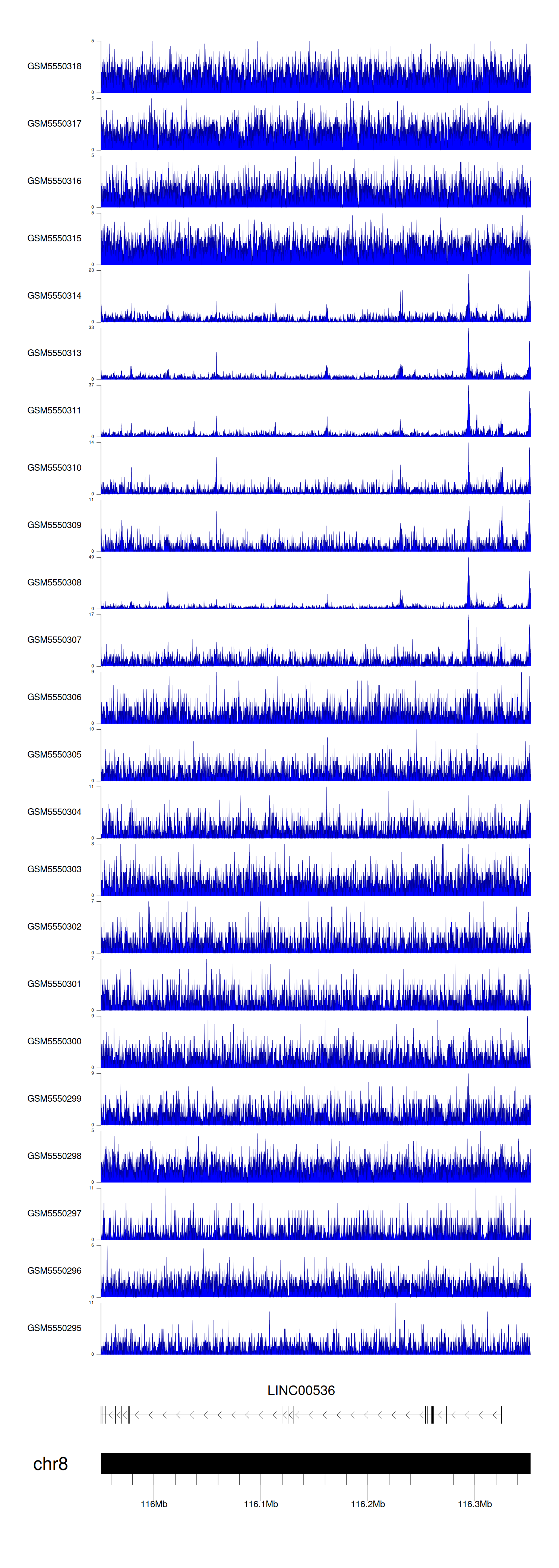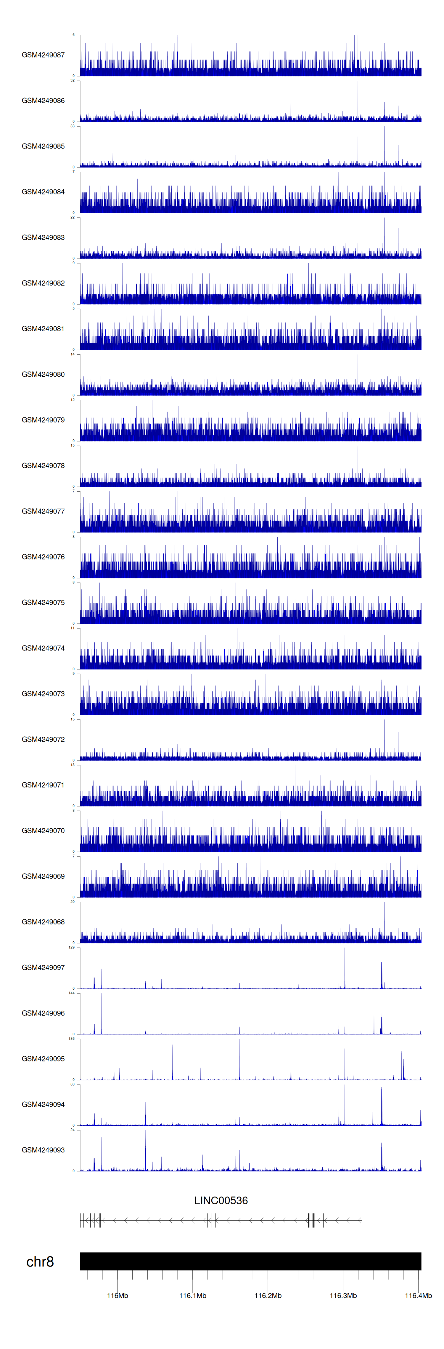 > Dataset: GSE143026 - LINC00536 peak across samples