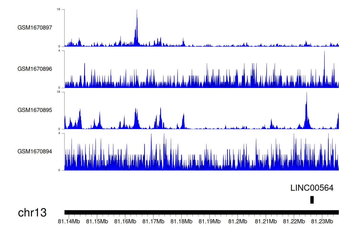 > Dataset: GSE68402 - LINC00564 peak across samples