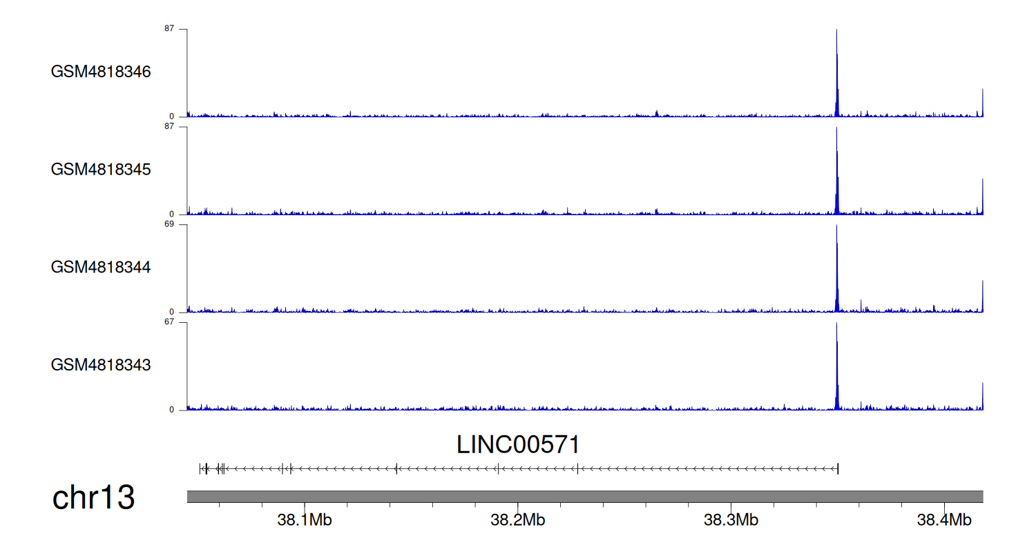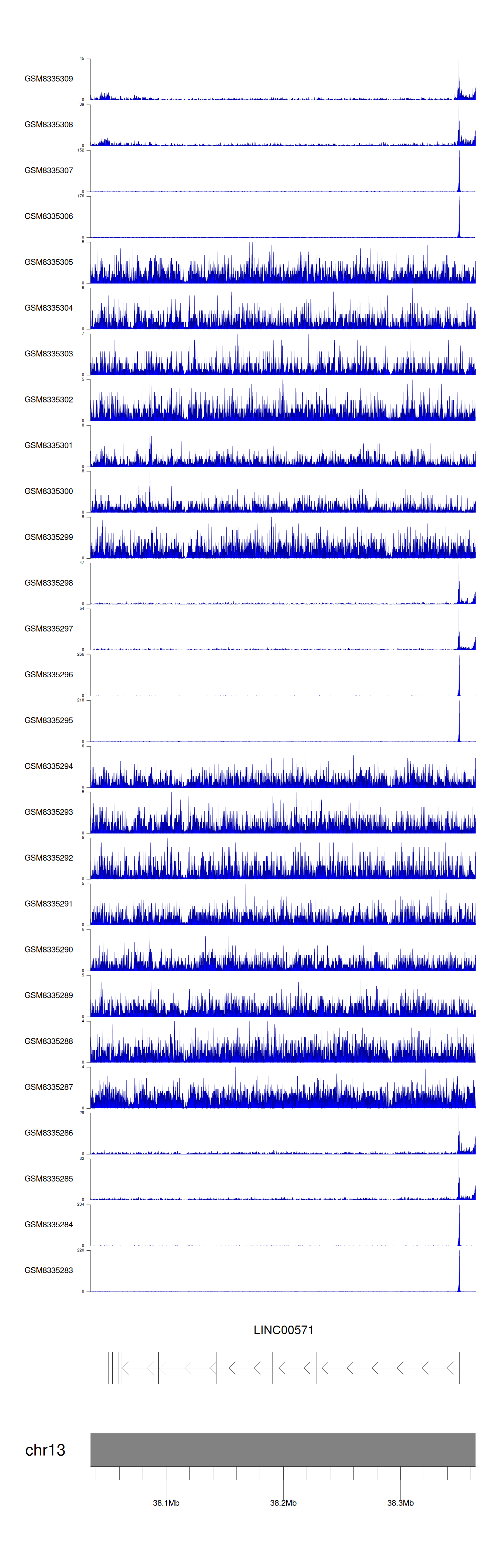 > Dataset: GSE270130 - LINC00571 peak across samples