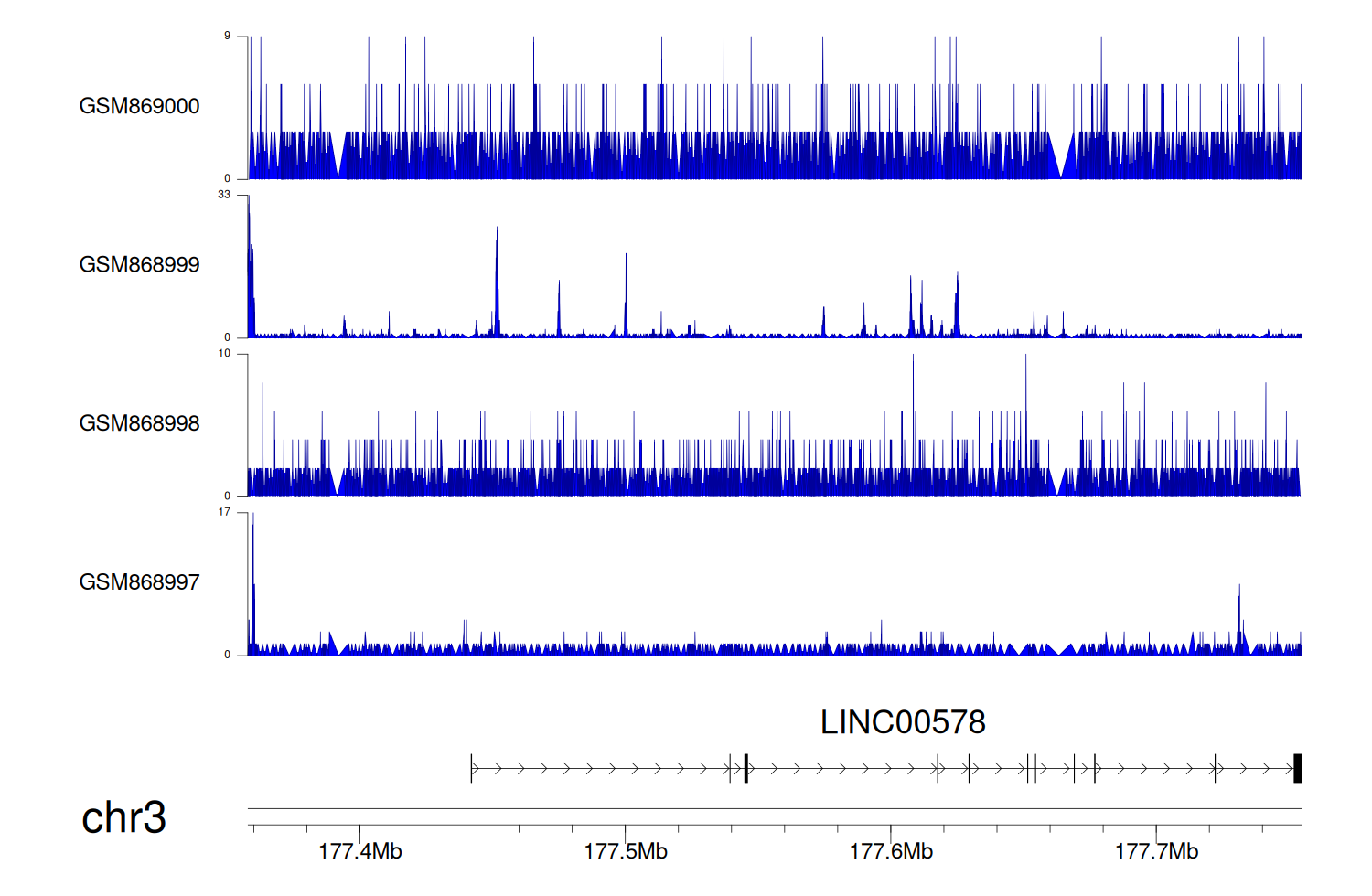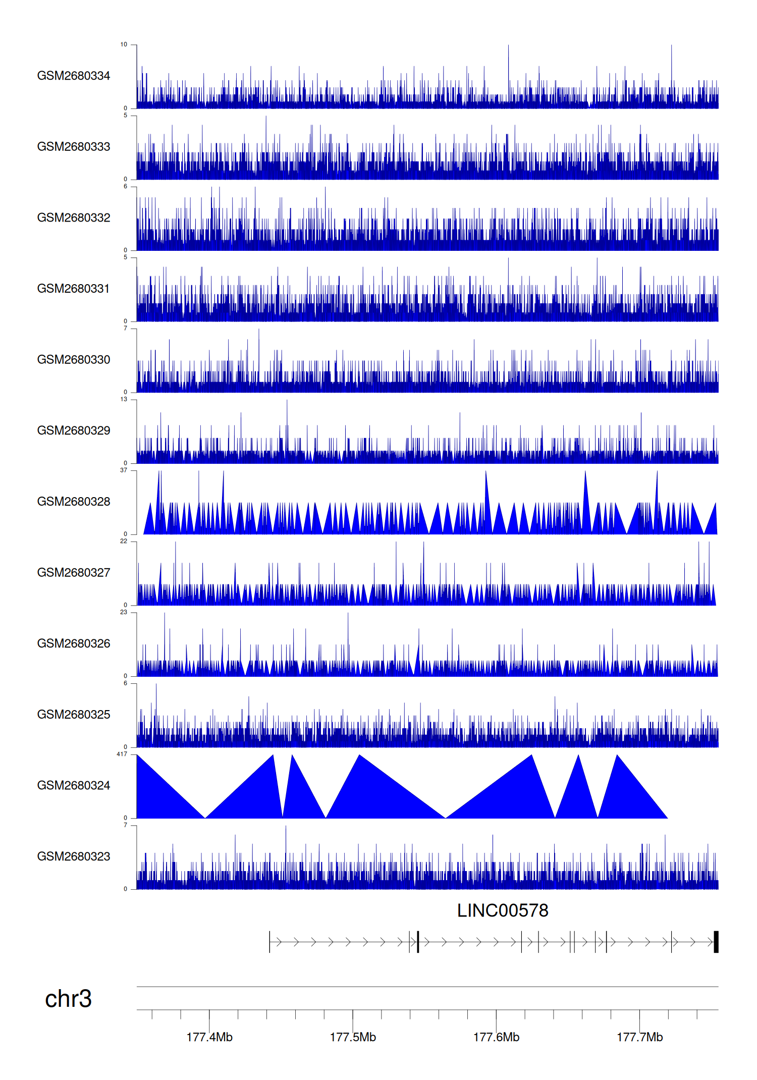 > Dataset: GSE68402 - LINC00578 peak across samples