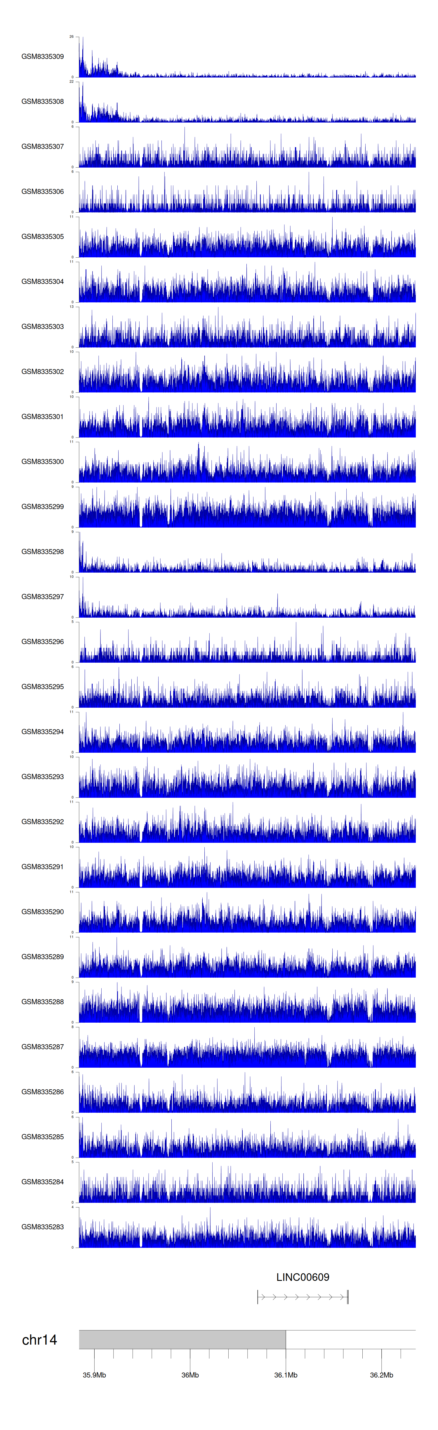 > Dataset: GSE270130 - LINC00609 peak across samples