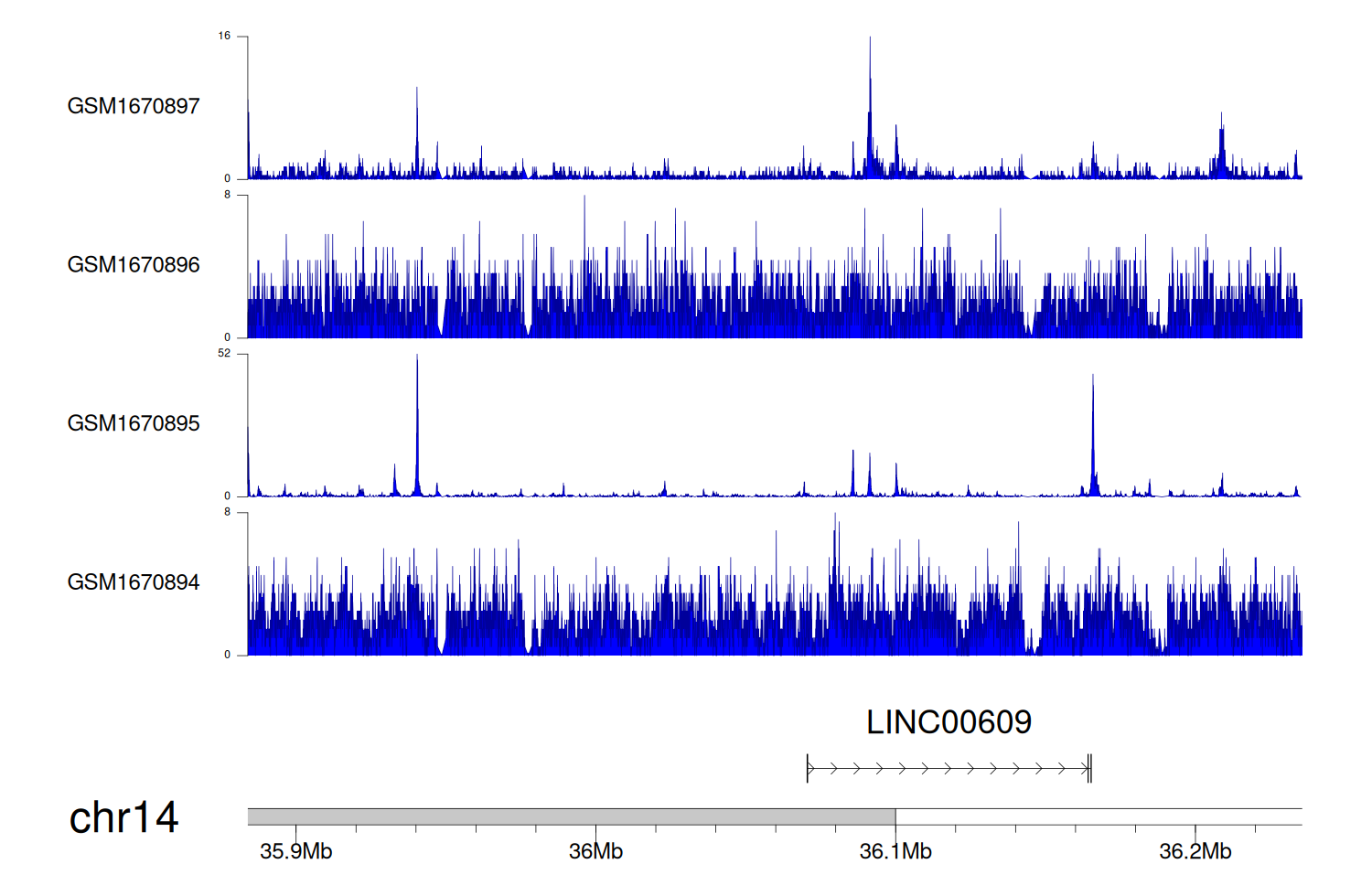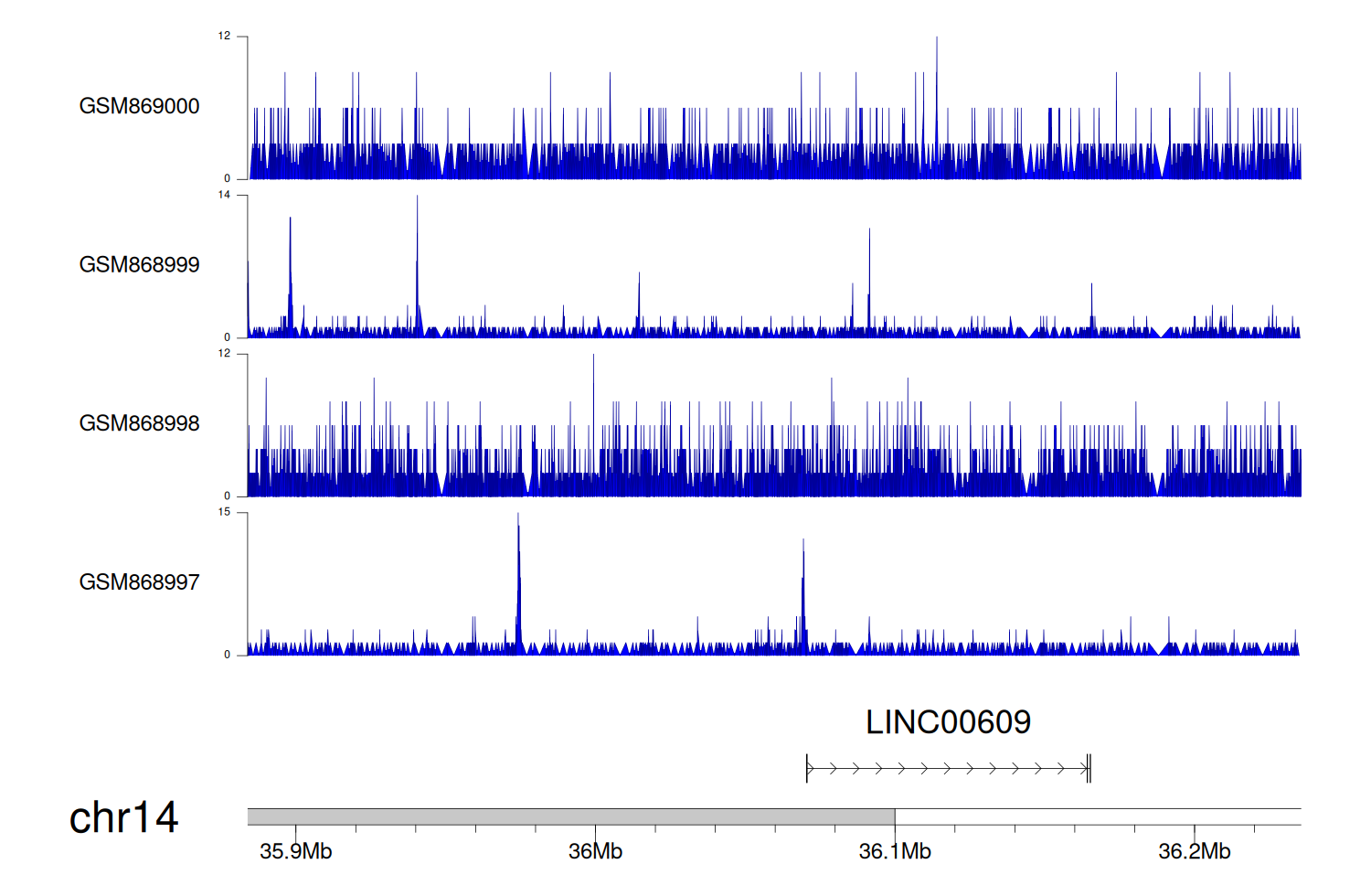 > Dataset: GSE68402 - LINC00609 peak across samples