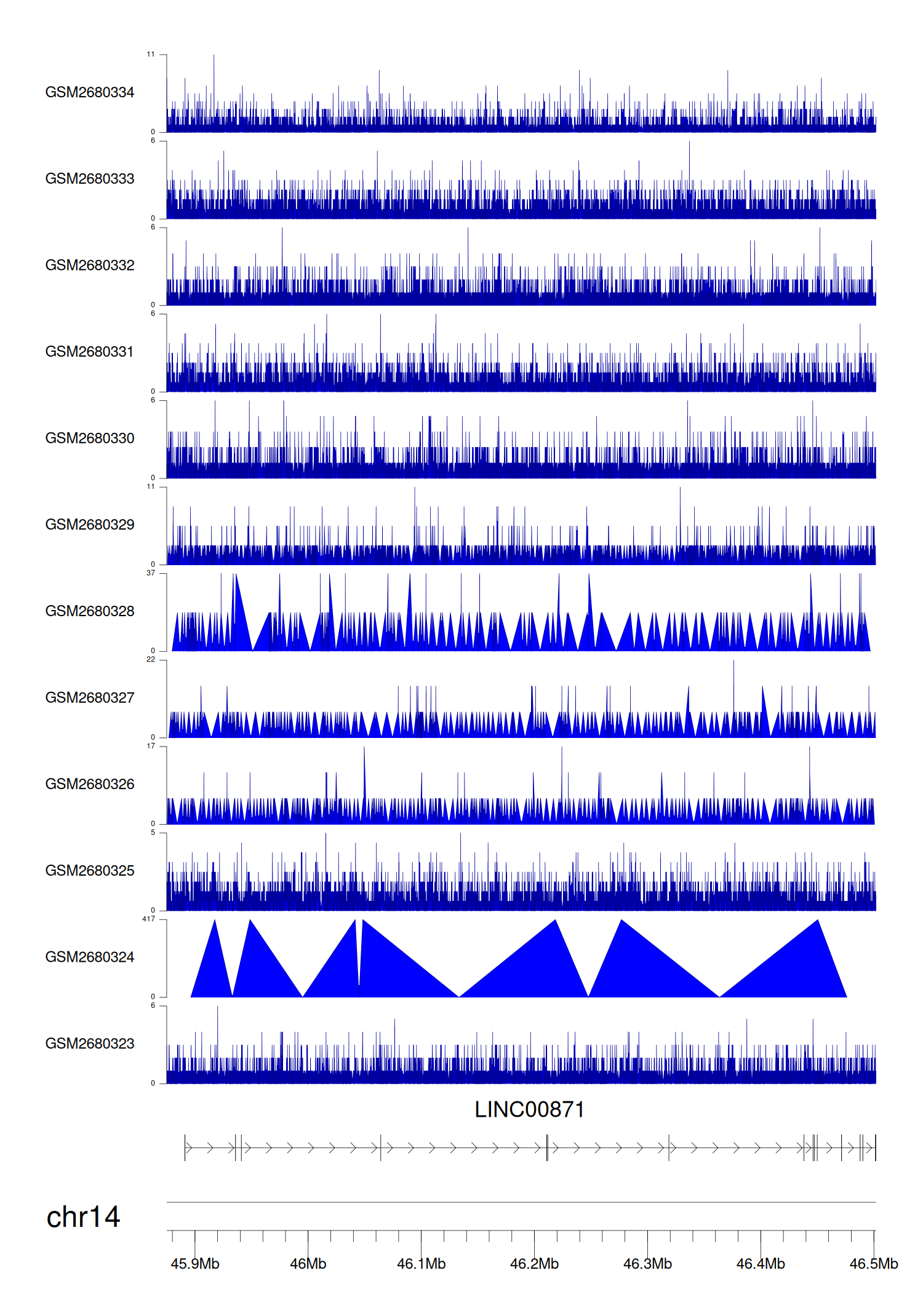 > Dataset: GSE100400 - LINC00871 peak across samples