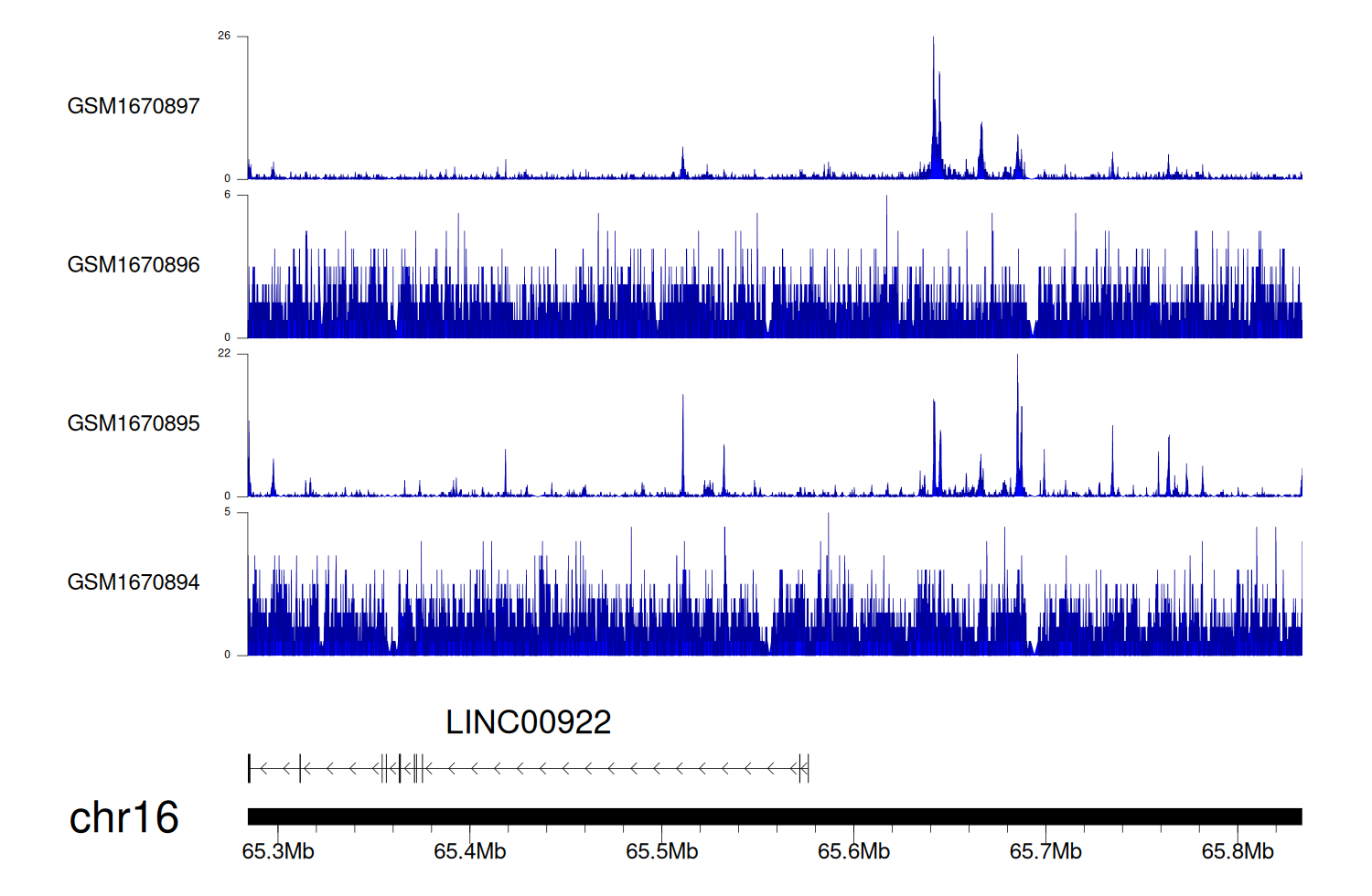 > Dataset: GSE68402 - LINC00922 peak across samples