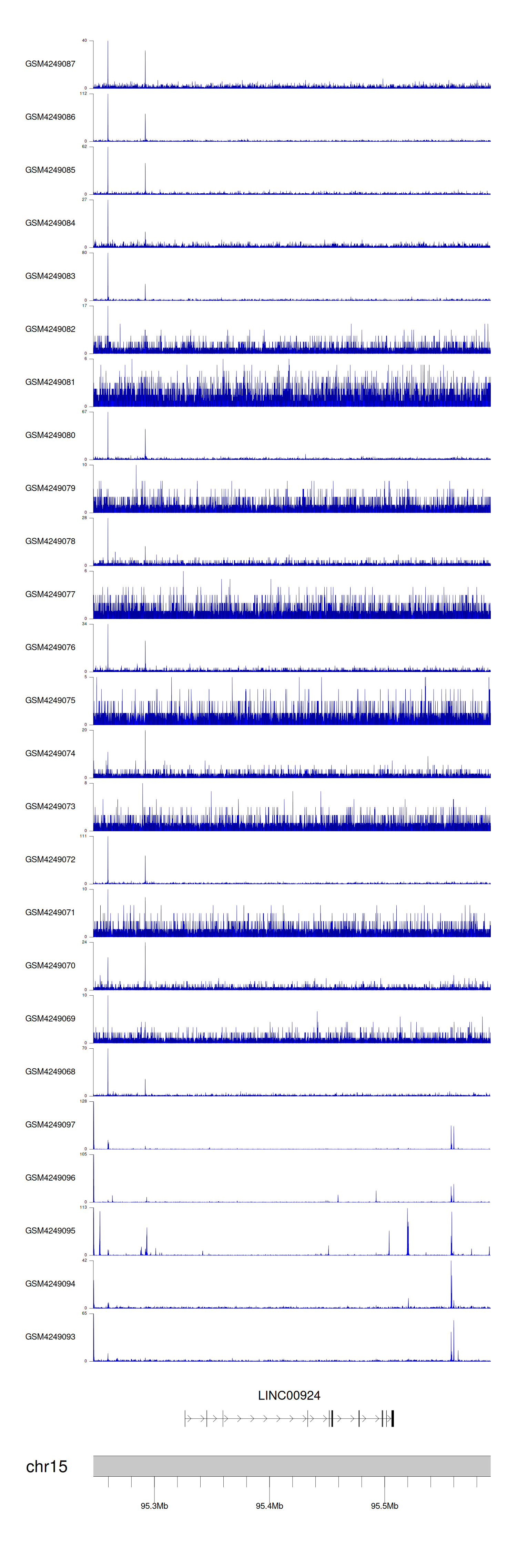 > Dataset: GSE143026 - LINC00924 peak across samples