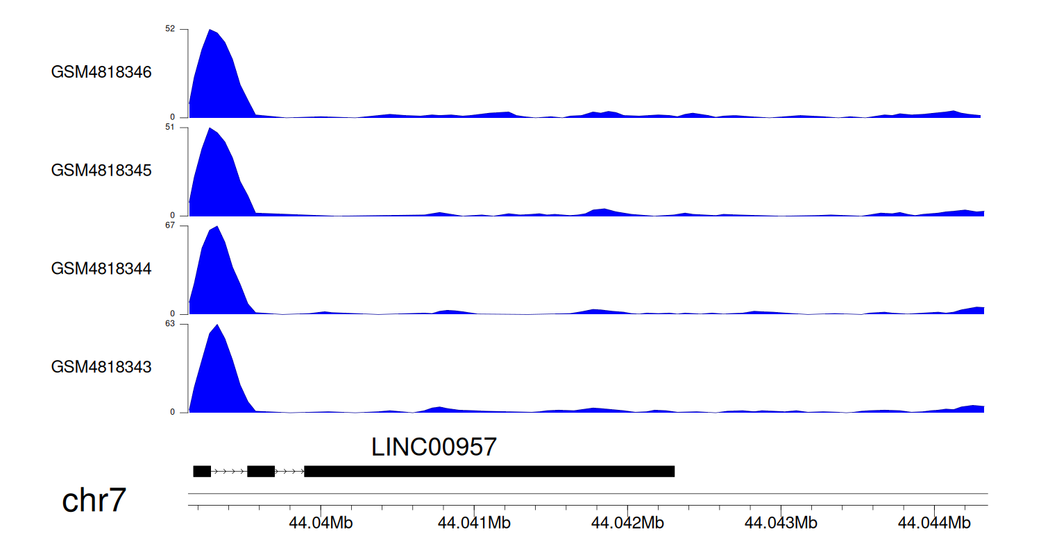 > Dataset: GSE131257 - LINC00957 peak across samples