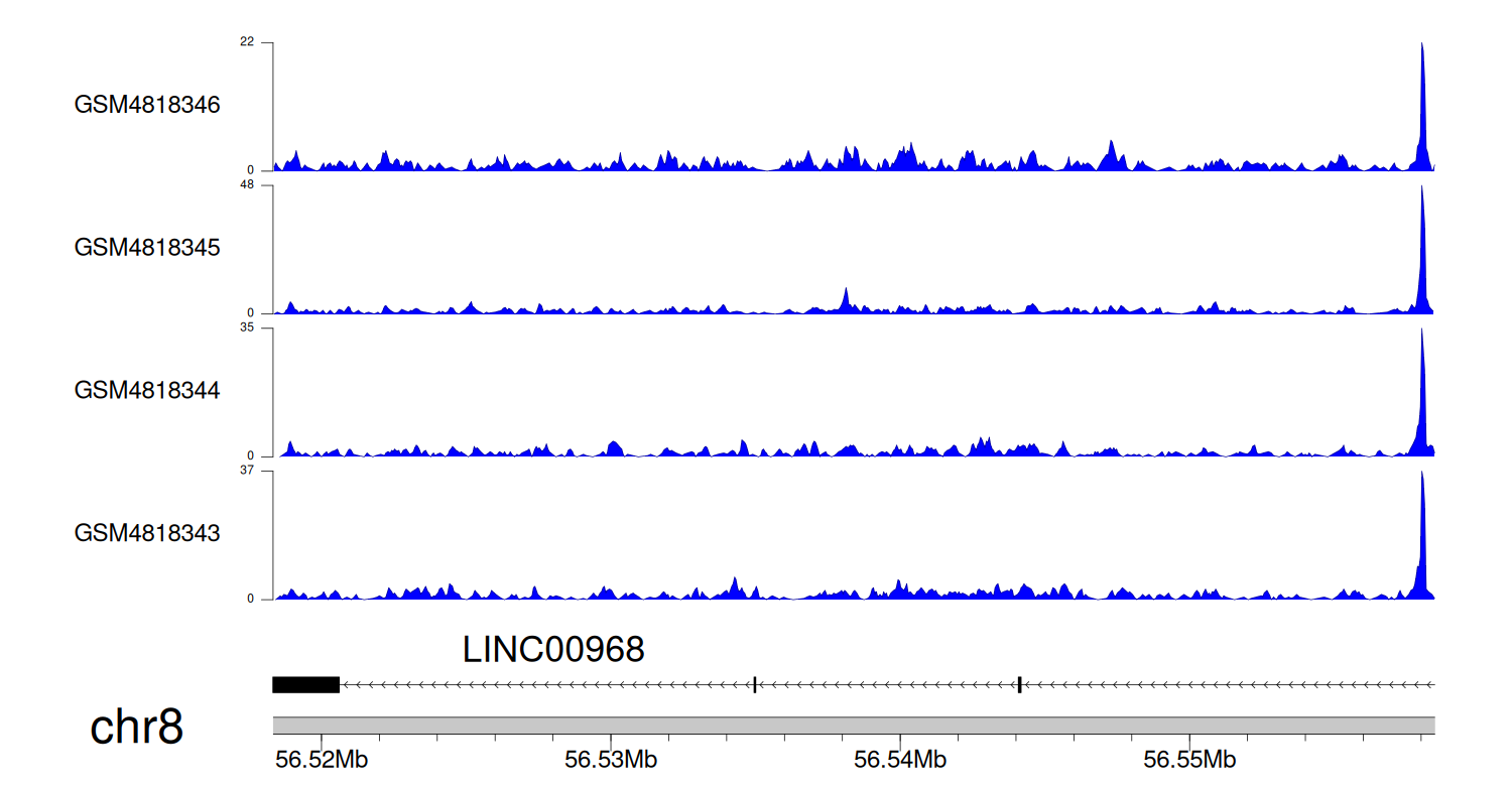 > Dataset: GSE131257 - LINC00968 peak across samples