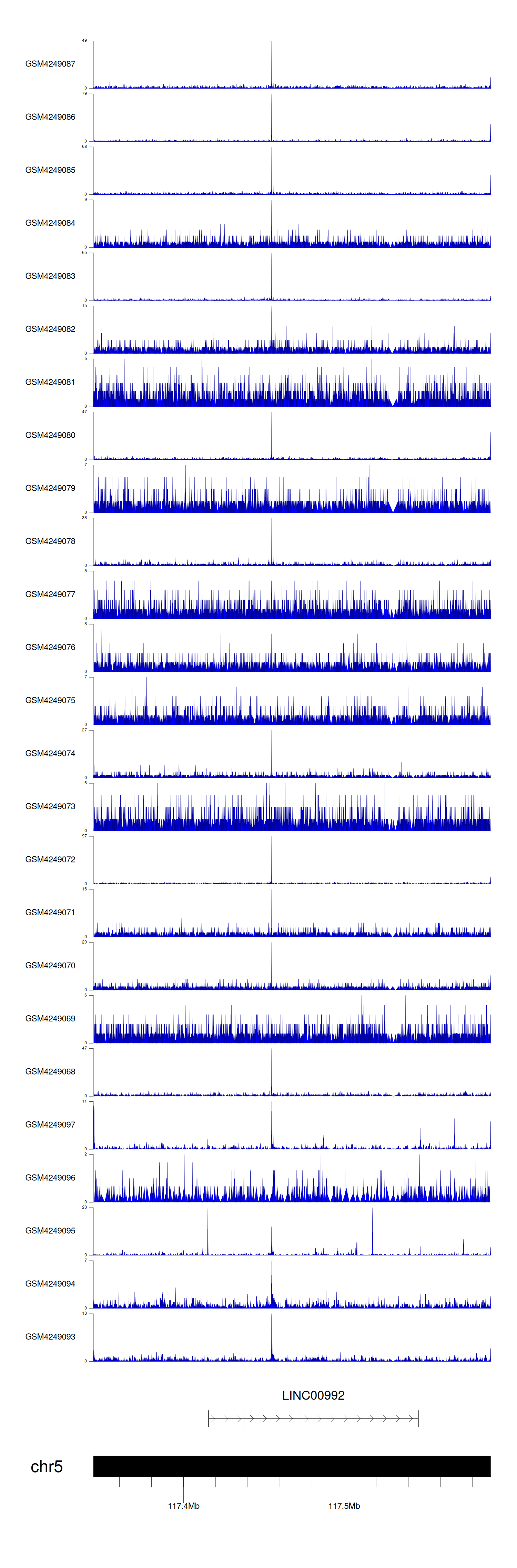 > Dataset: GSE143026 - LINC00992 peak across samples