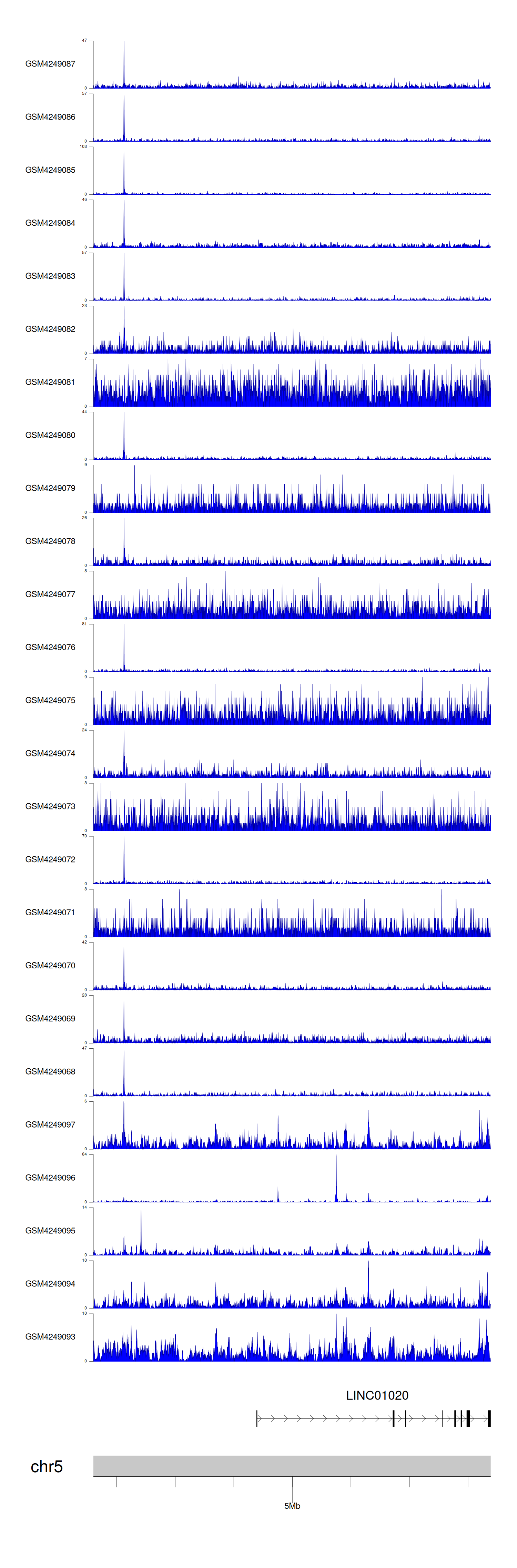 > Dataset: GSE143026 - LINC01020 peak across samples