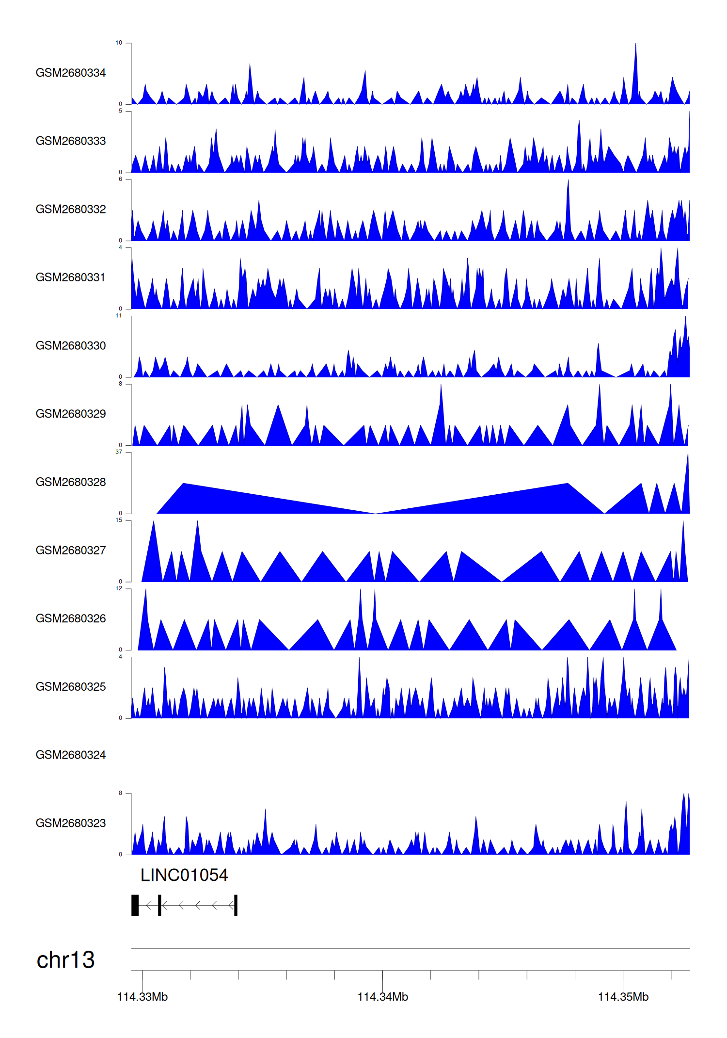> Dataset: GSE68402 - LINC01054 peak across samples