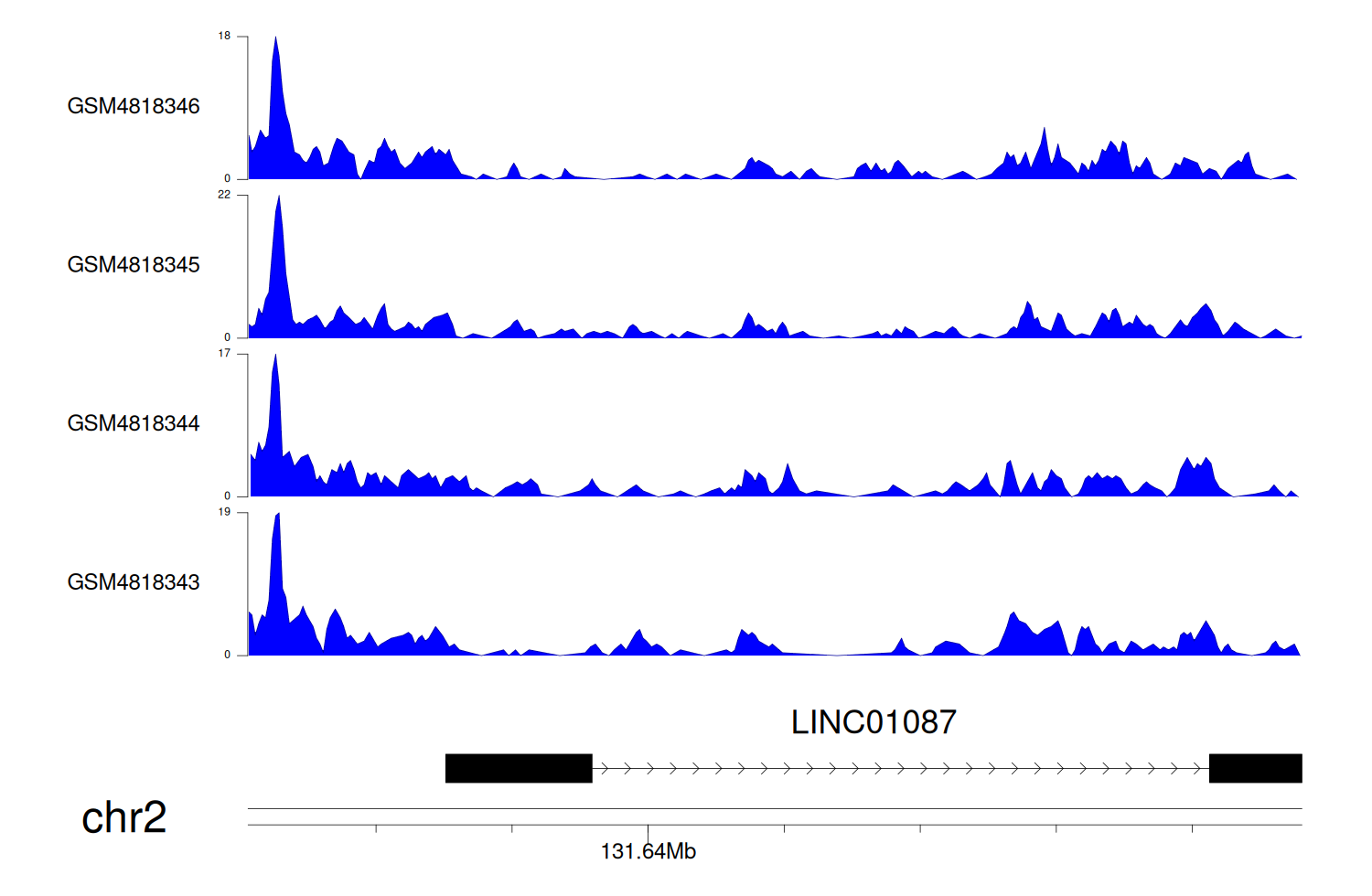 > Dataset: GSE131257 - LINC01087 peak across samples