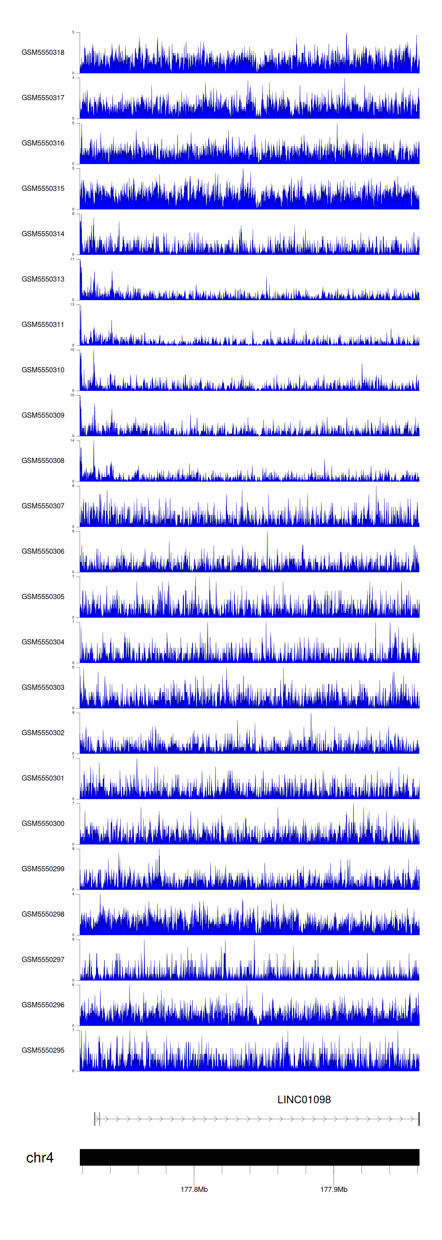 > Dataset: GSE143026 - LINC01098 peak across samples