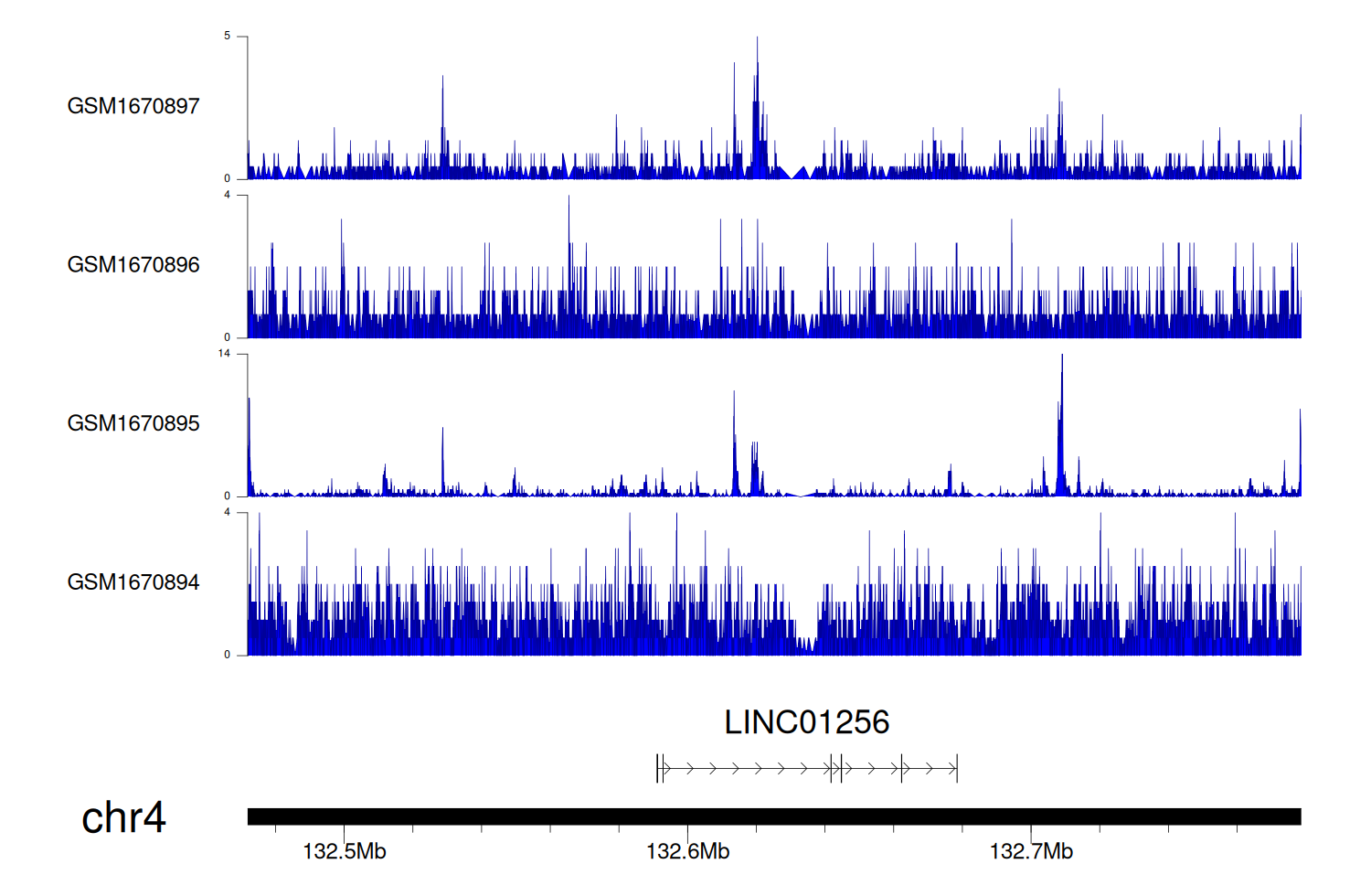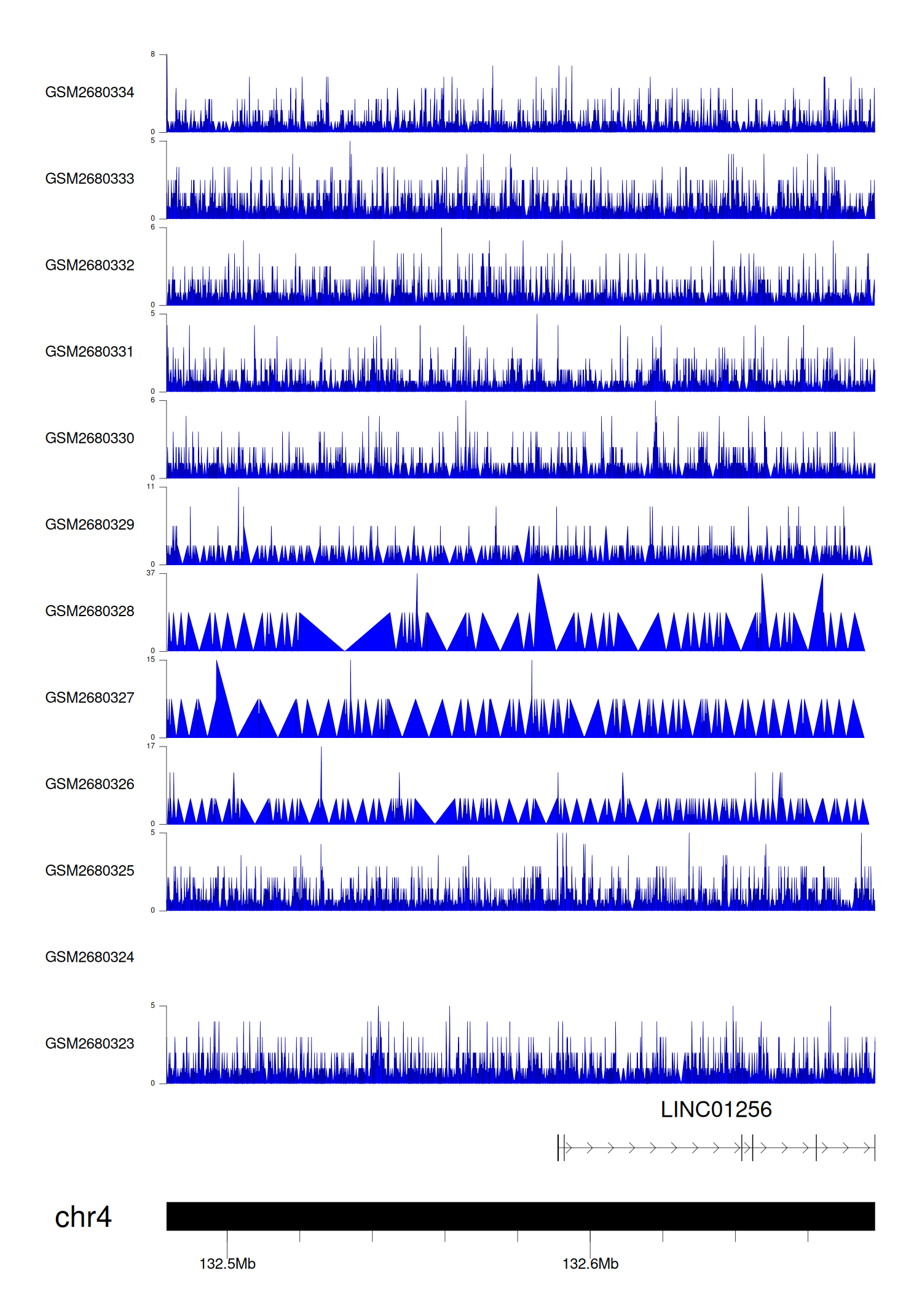 > Dataset: GSE68402 - LINC01256 peak across samples