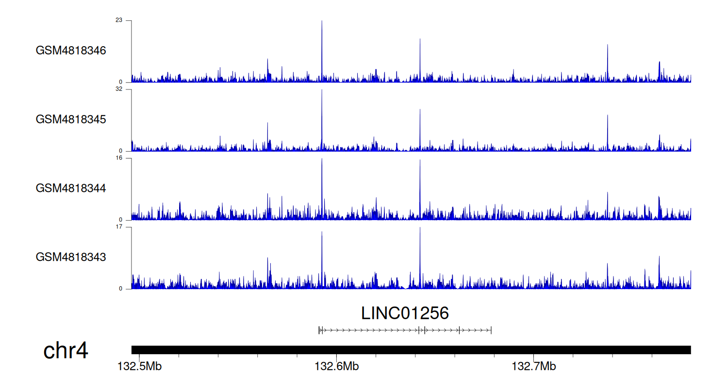 > Dataset: GSE131257 - LINC01256 peak across samples