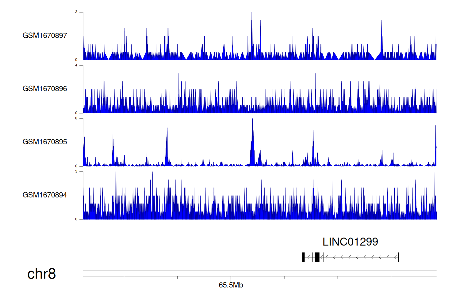 > Dataset: GSE68402 - LINC01299 peak across samples