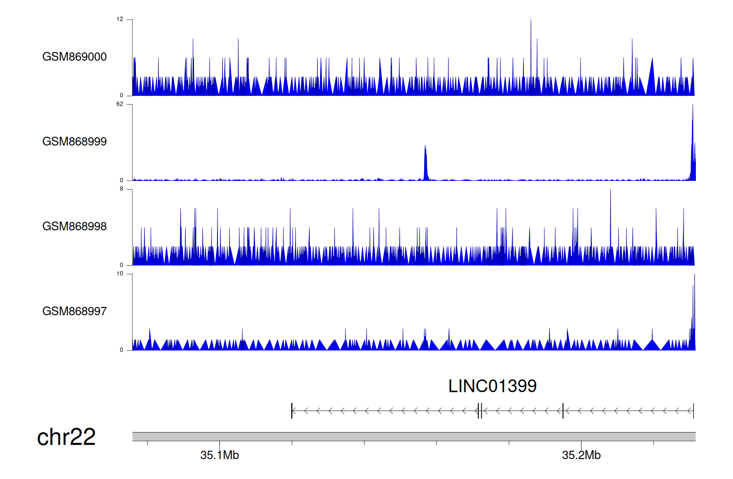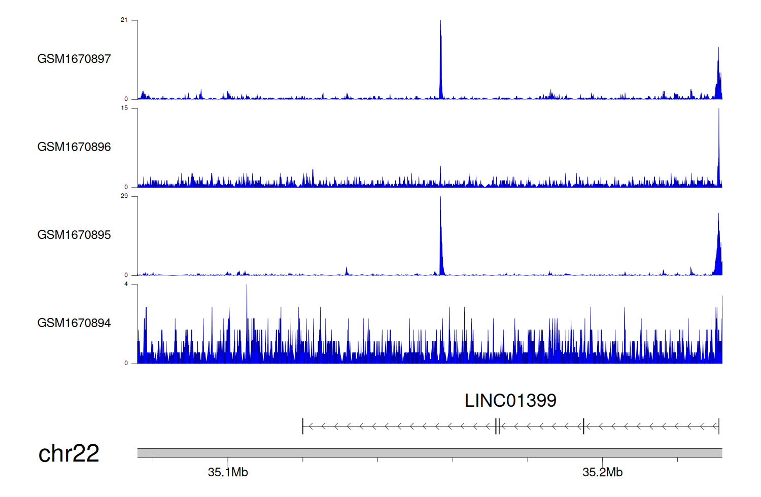 > Dataset: GSE35465 - LINC01399 peak across samples