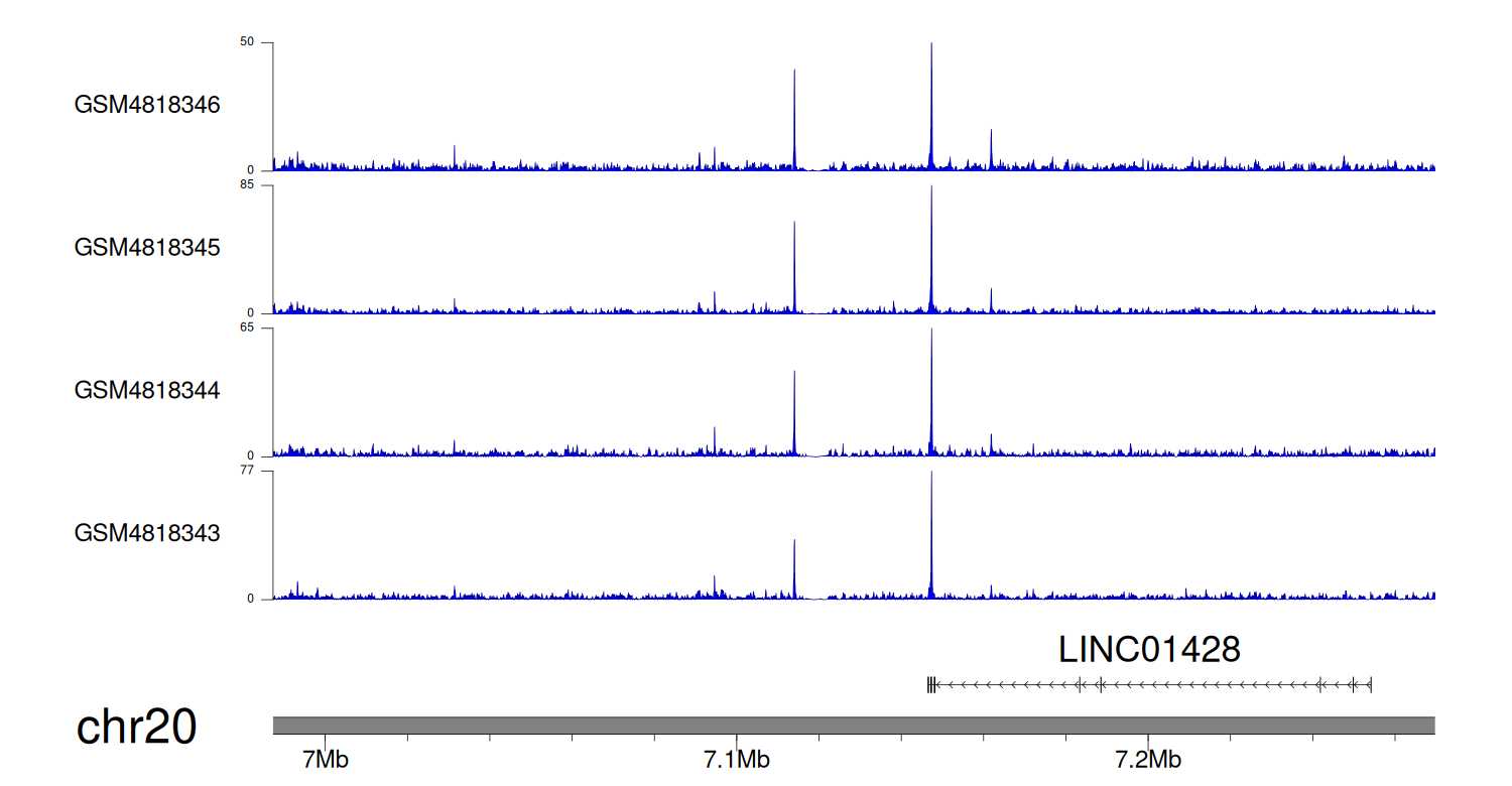 > Dataset: GSE131257 - LINC01428 peak across samples