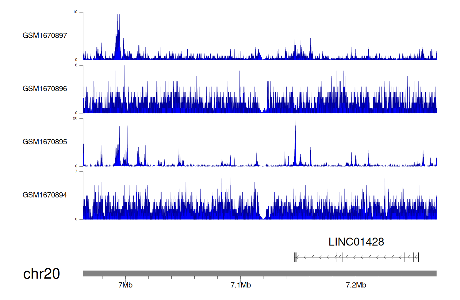 > Dataset: GSE68402 - LINC01428 peak across samples