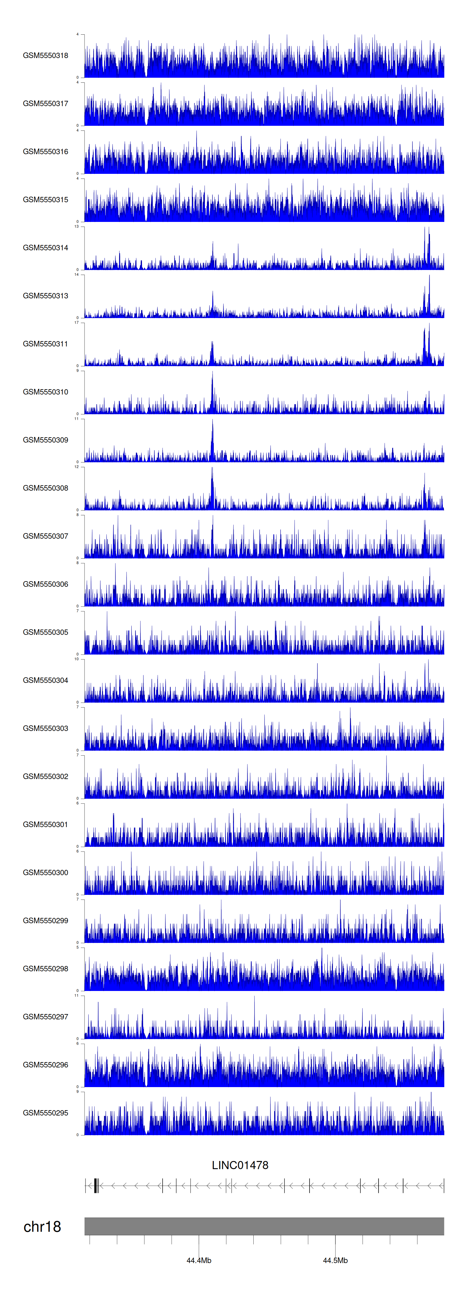 > Dataset: GSE143026 - LINC01478 peak across samples