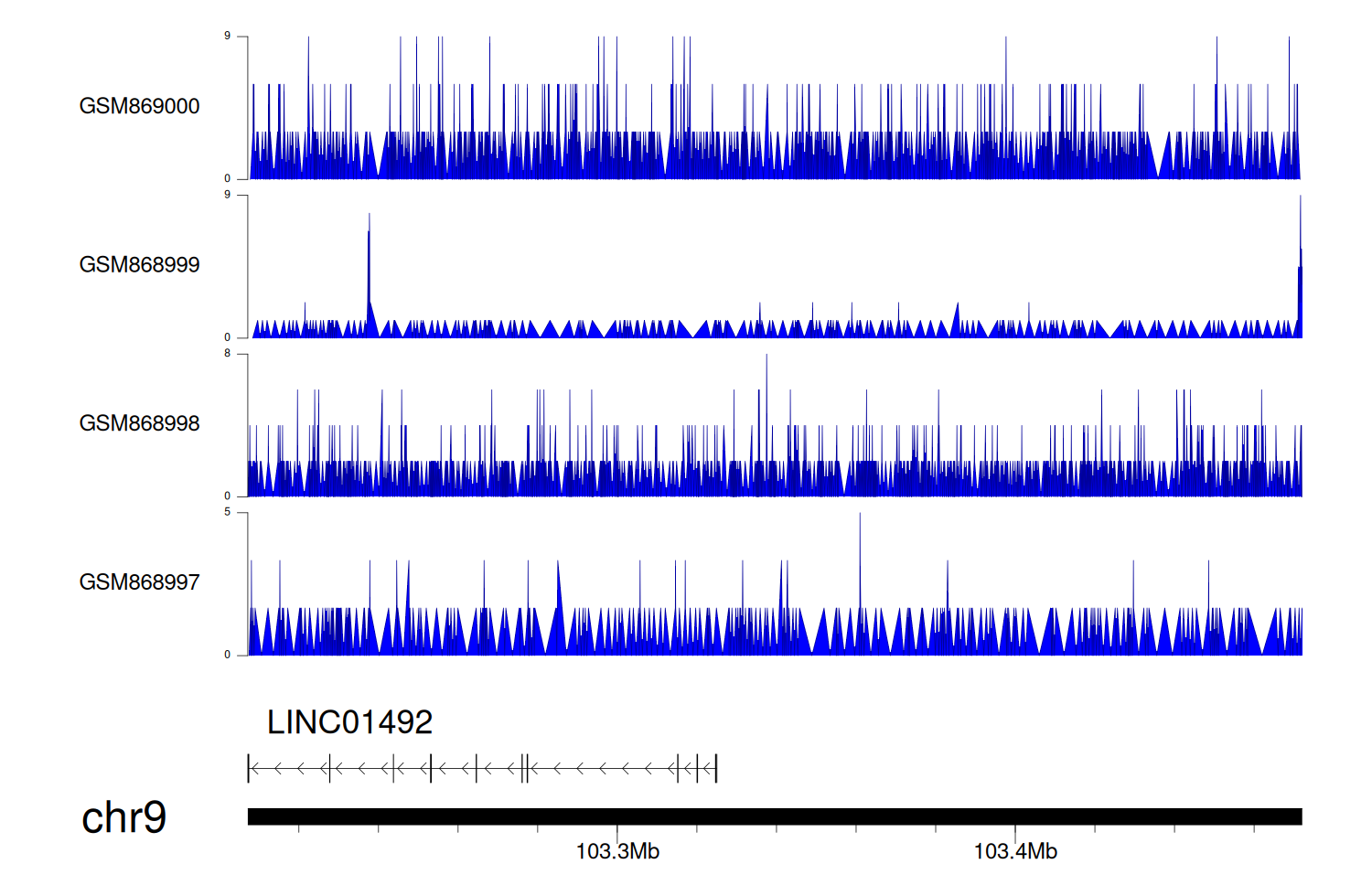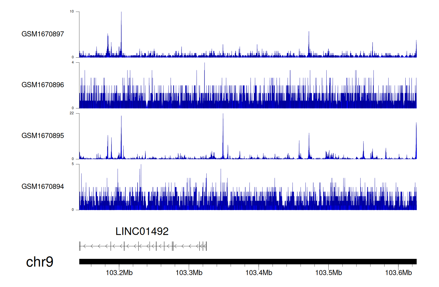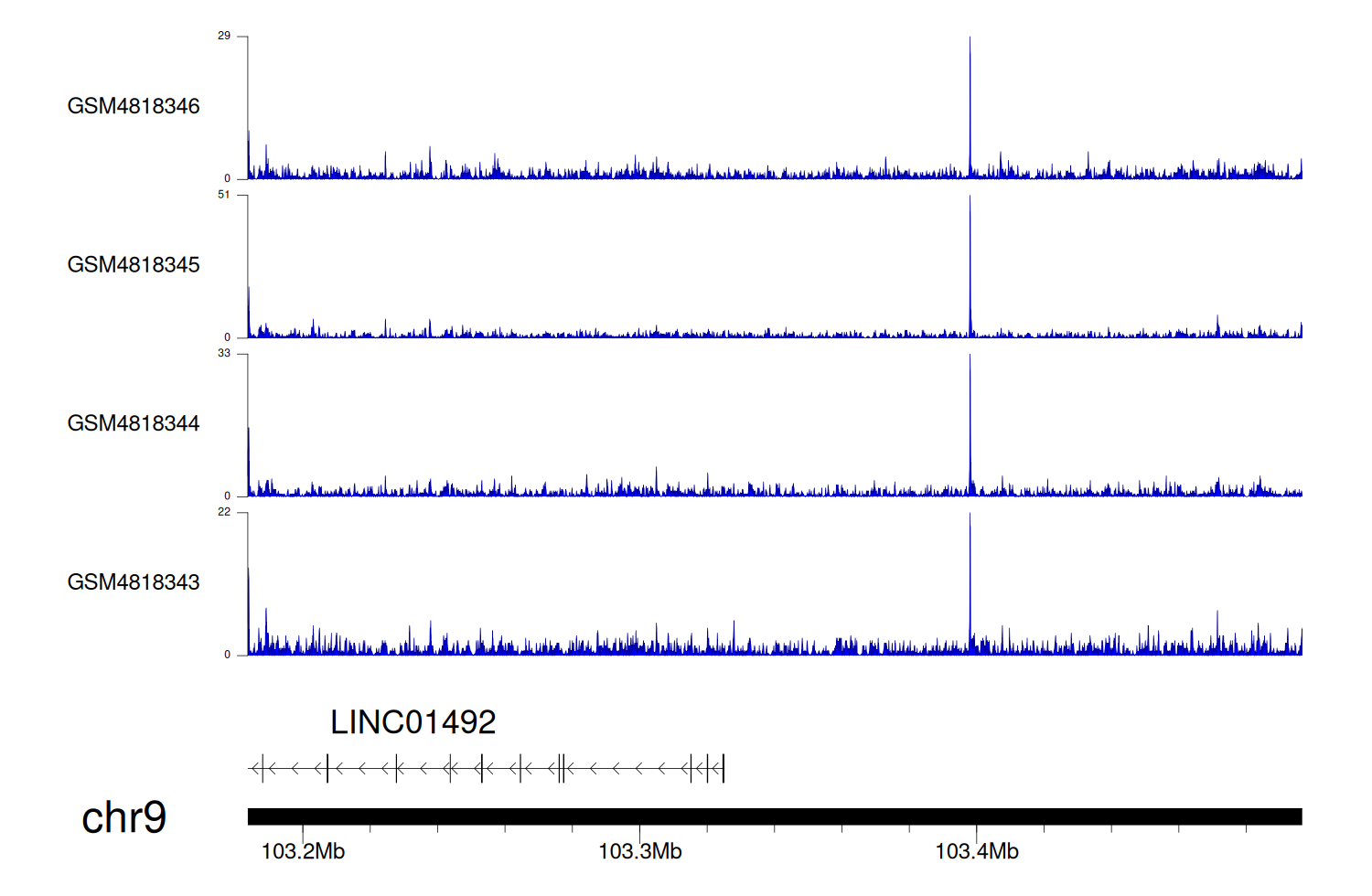 > Dataset: GSE100400 - LINC01492 peak across samples
