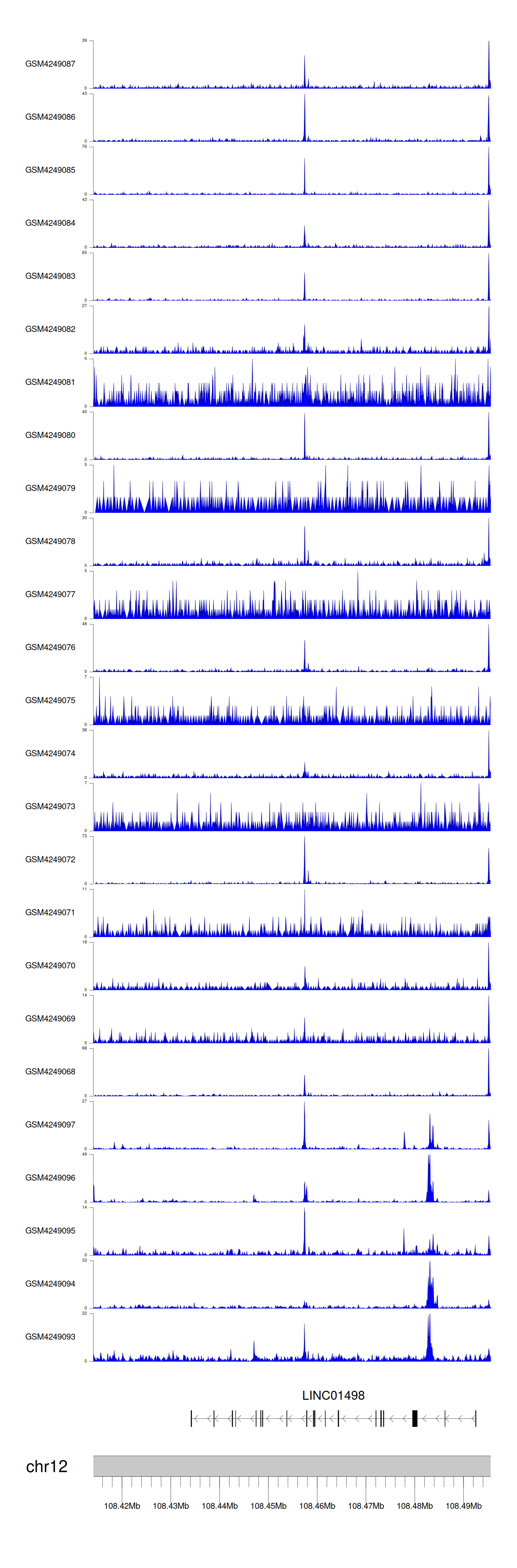 > Dataset: GSE143026 - LINC01498 peak across samples