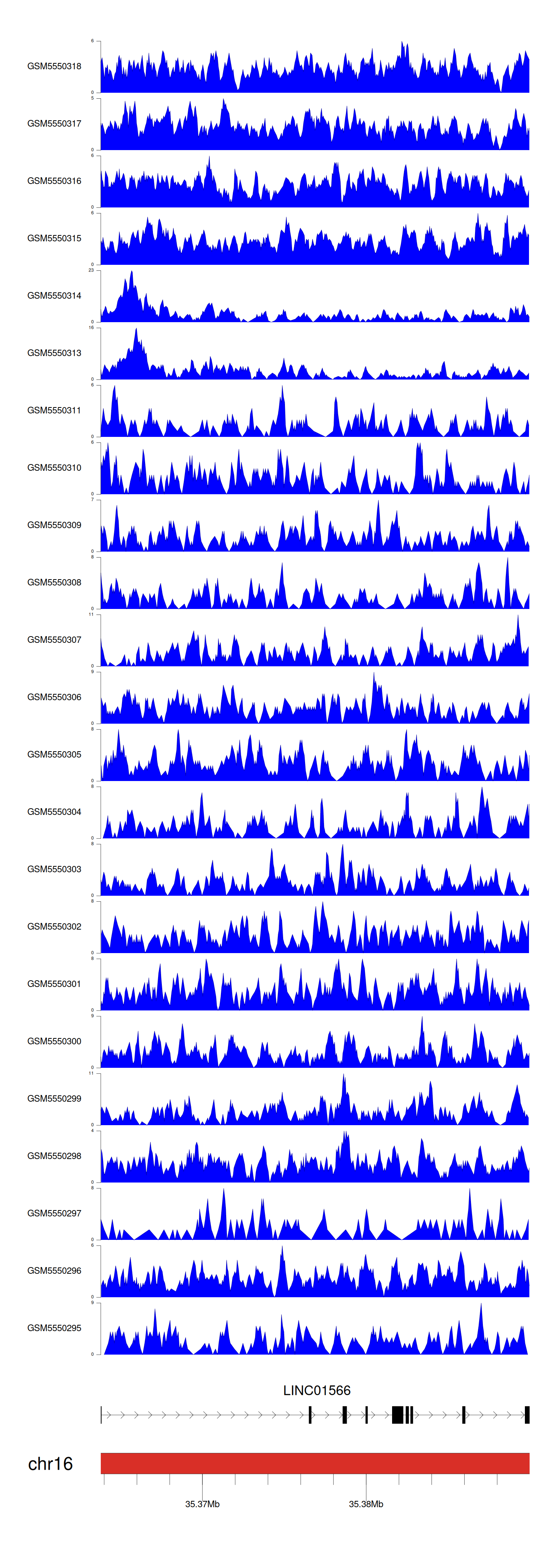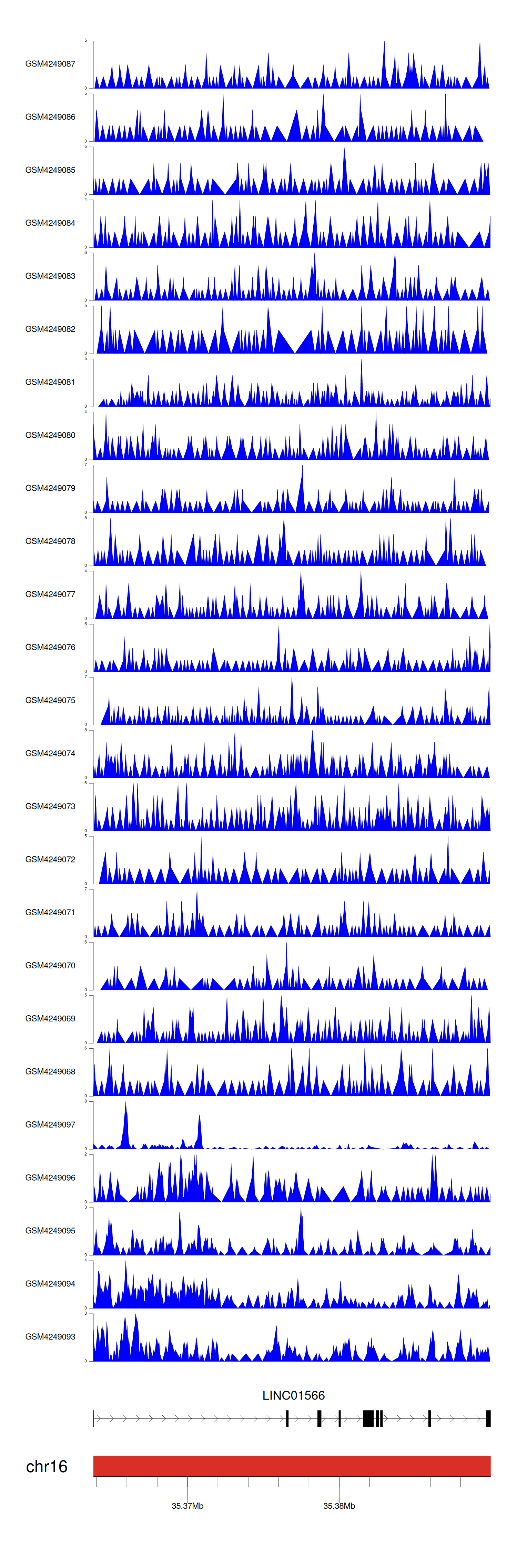 > Dataset: GSE143026 - LINC01566 peak across samples