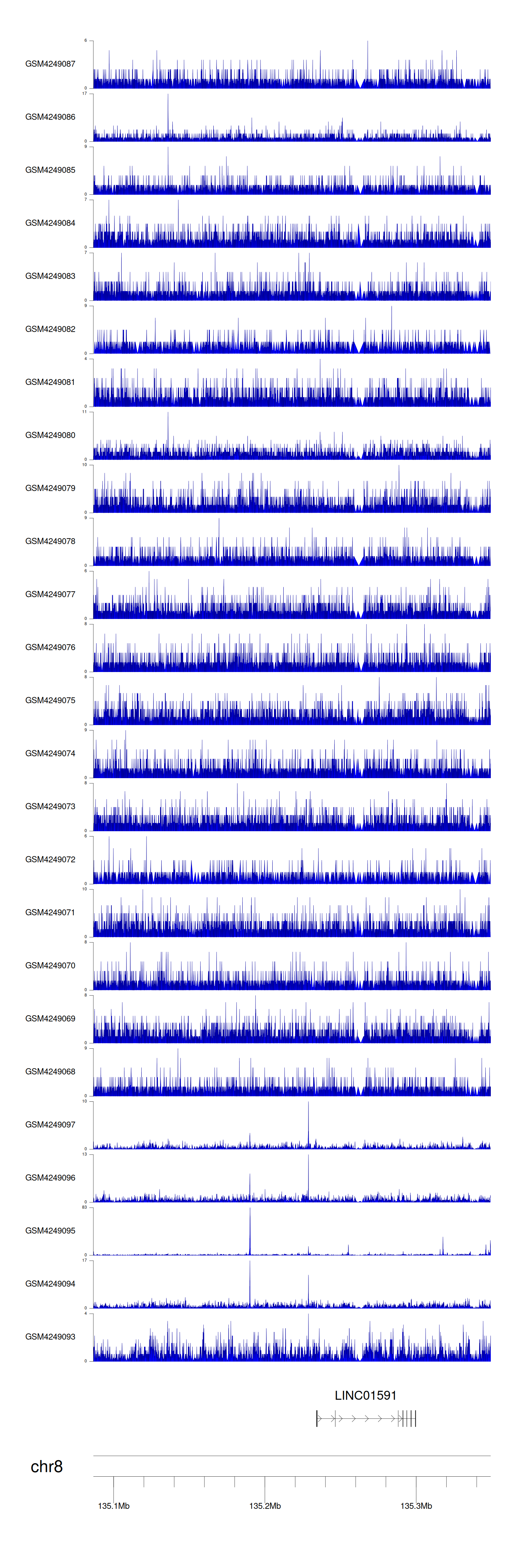 > Dataset: GSE143026 - LINC01591 peak across samples