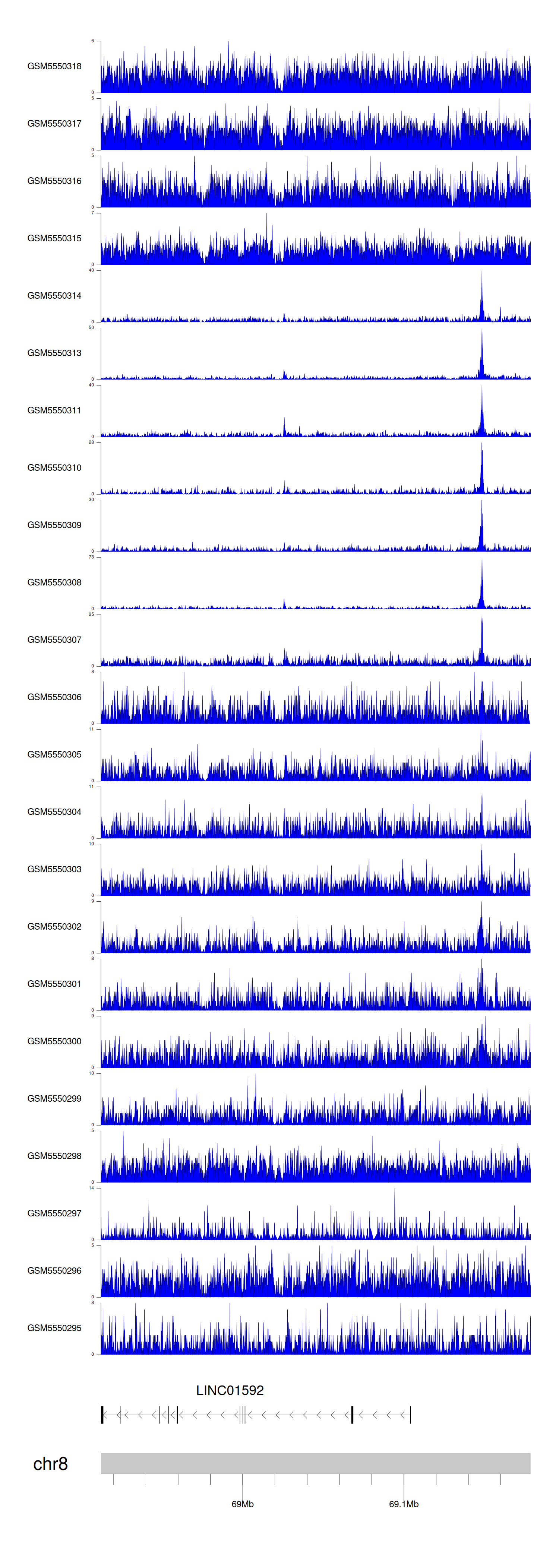 > Dataset: GSE143026 - LINC01592 peak across samples
