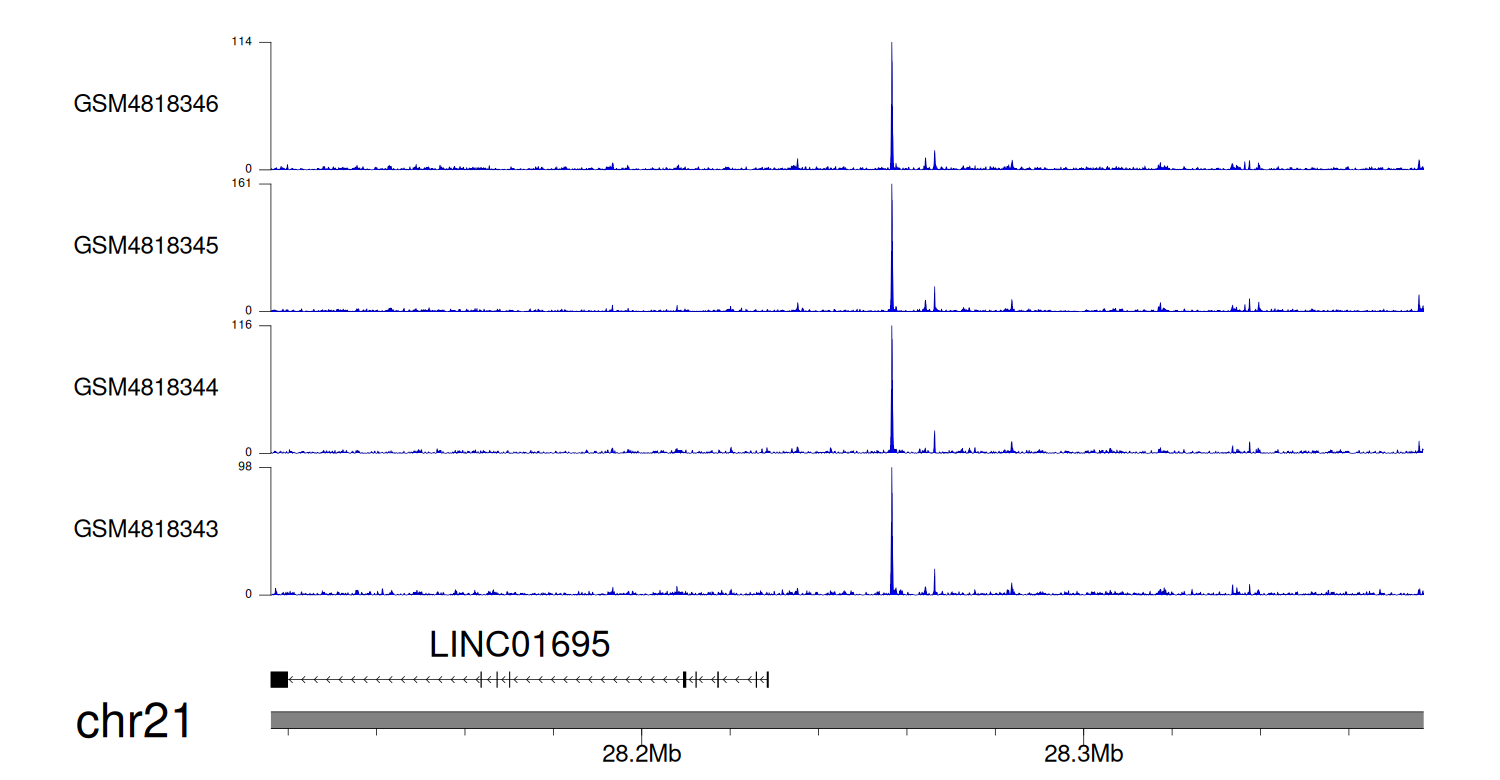 > Dataset: GSE131257 - LINC01695 peak across samples