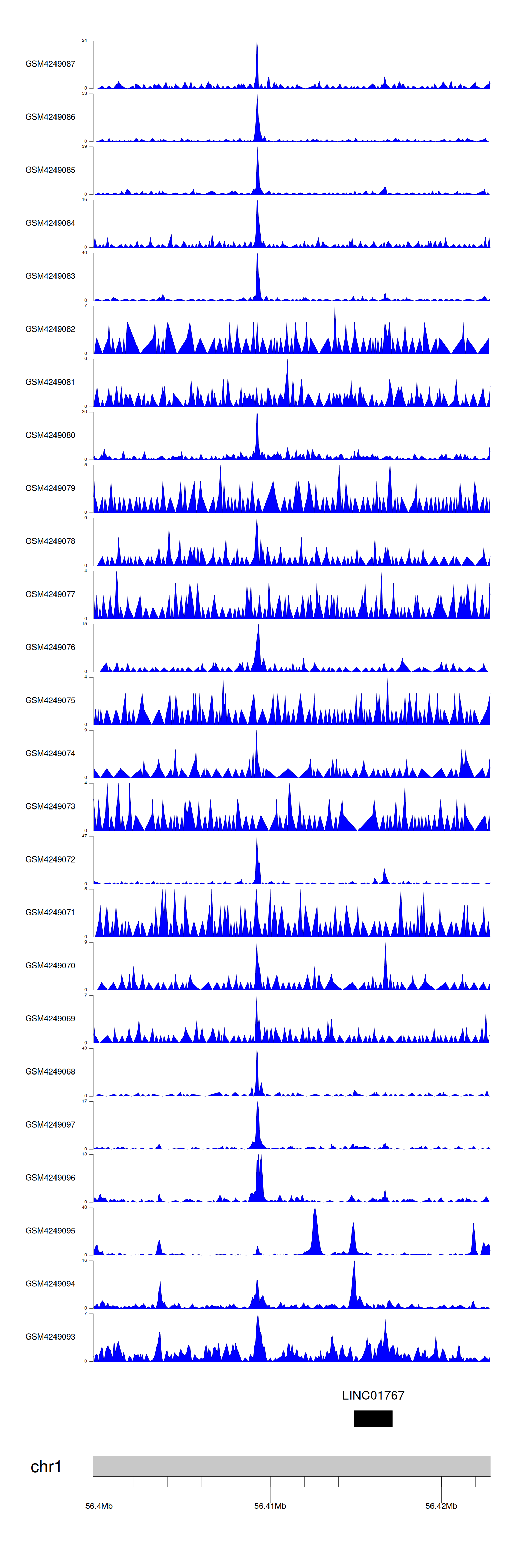> Dataset: GSE143026 - LINC01767 peak across samples