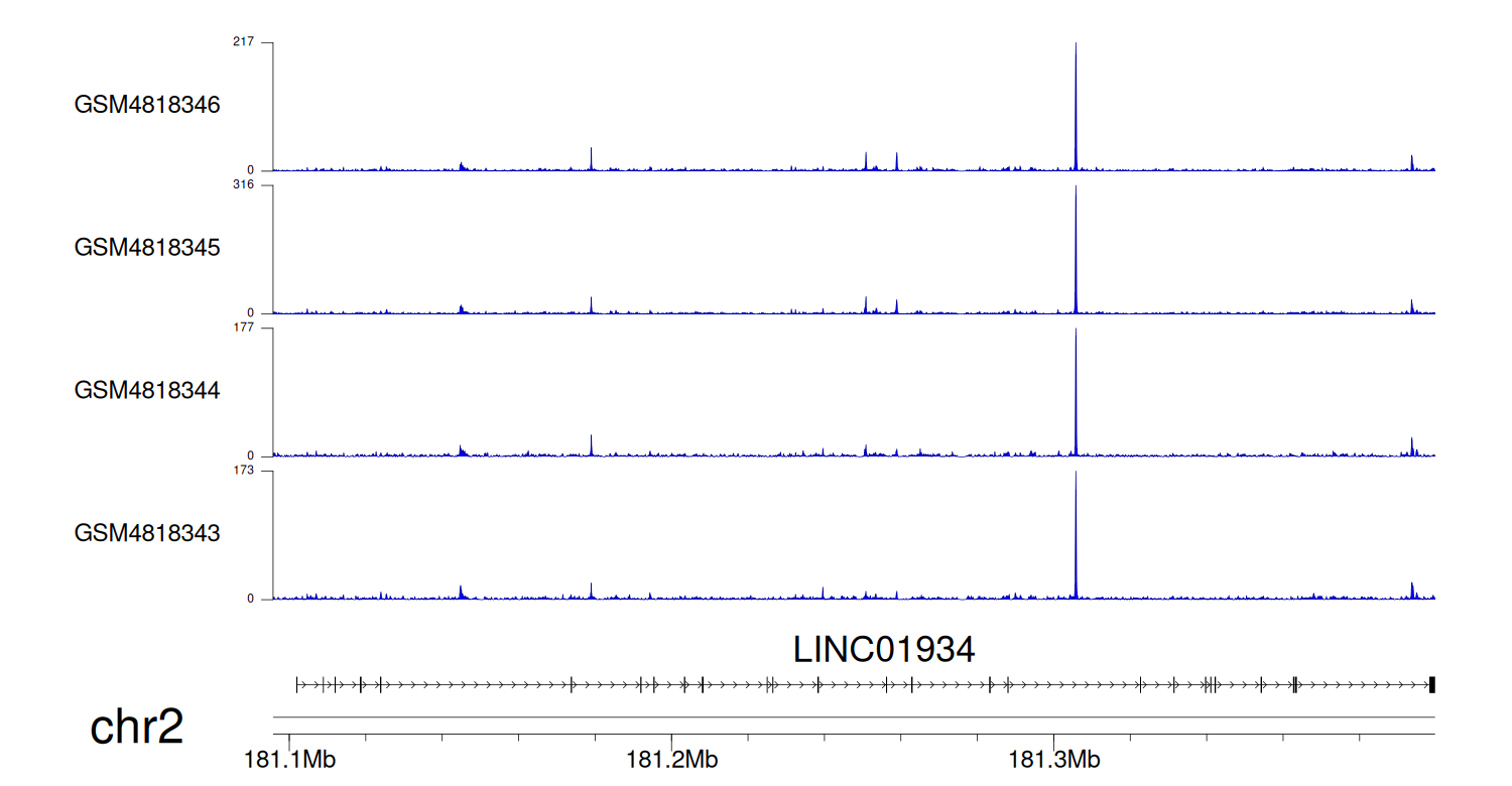 > Dataset: GSE131257 - LINC01934 peak across samples