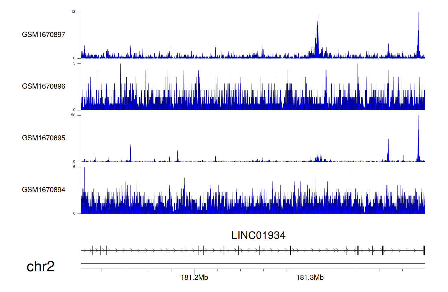 > Dataset: GSE68402 - LINC01934 peak across samples
