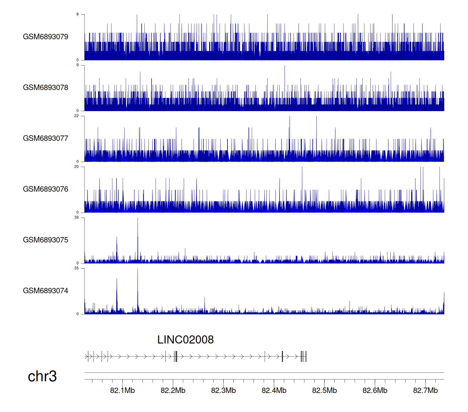 > Dataset: GSE220859 - LINC02008 peak across samples