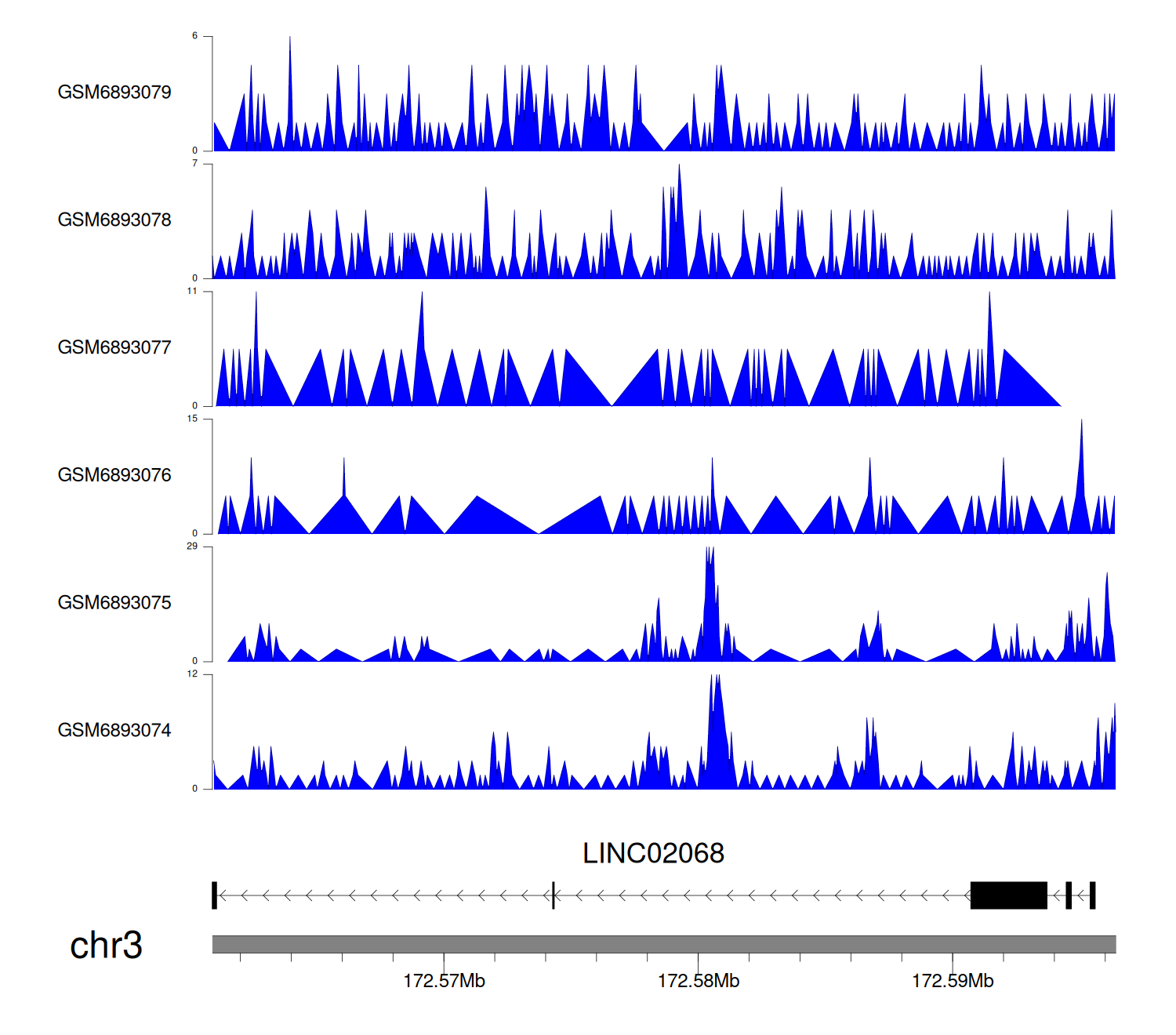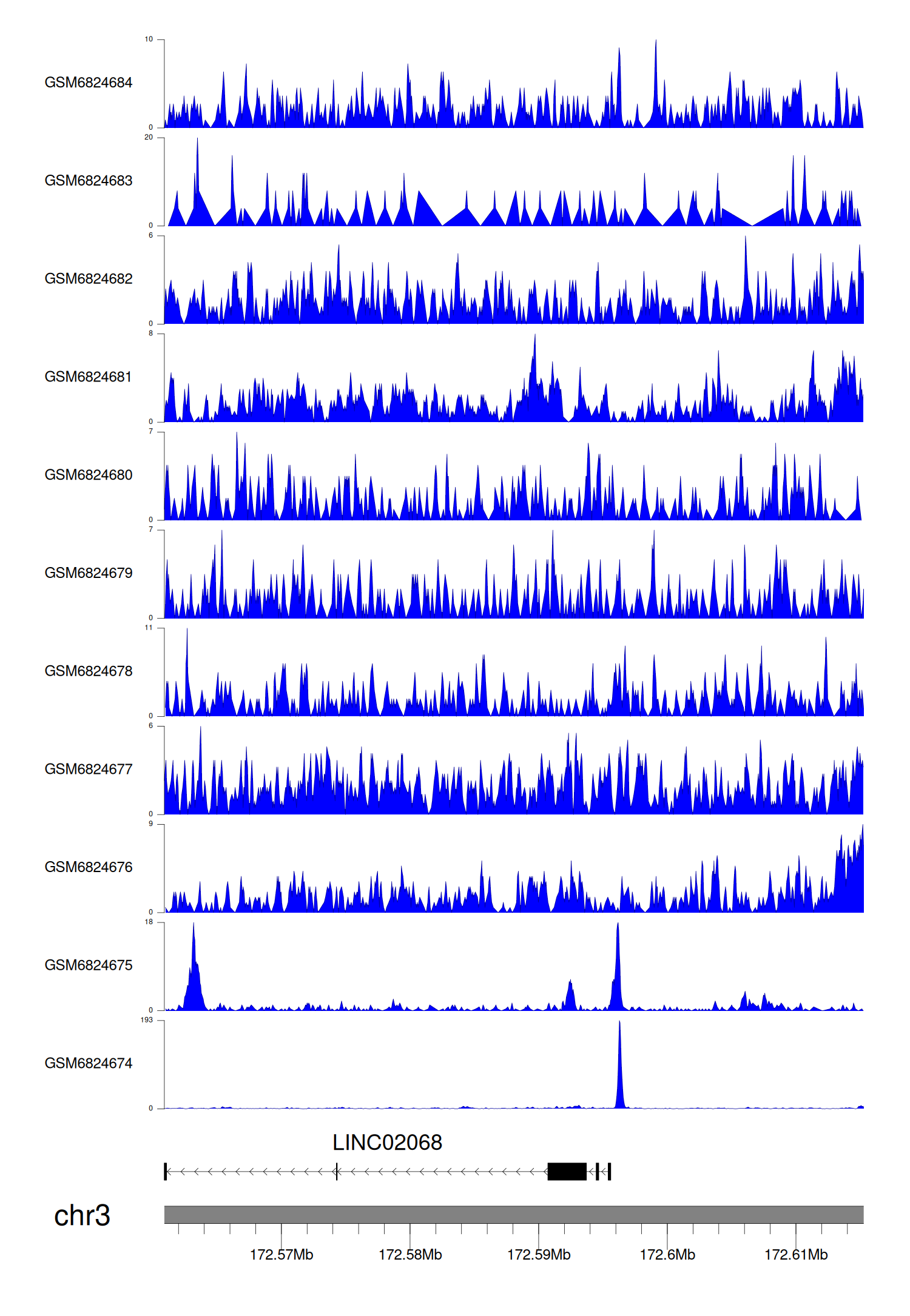 > Dataset: GSE220859 - LINC02068 peak across samples