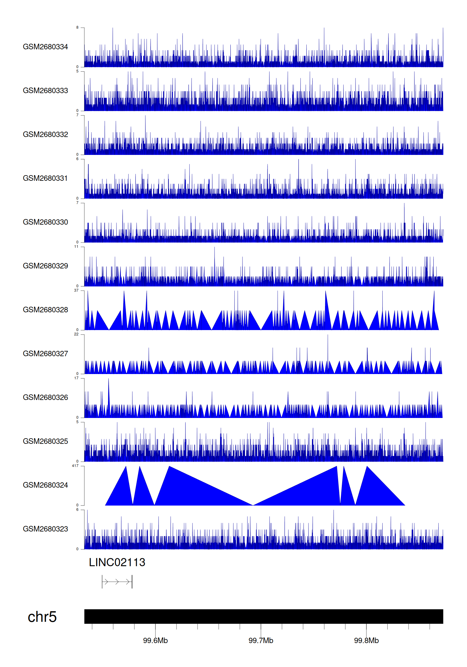 > Dataset: GSE68402 - LINC02113 peak across samples